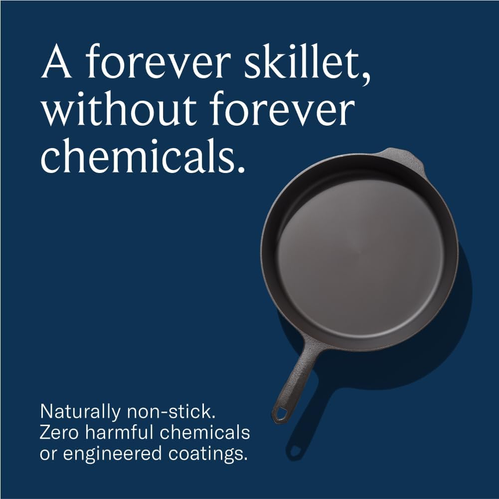 - NATURALLY NONSTICK, PFAS-FREE & NONTOXIC (No PFOA, PTFE, or Forever Chemicals): Field Skillets come pre-seasoned with organic grapeseed oil. As you cook, your pan will develop additional seasoning layers, becoming more nonstick over time—naturally and without any toxic chemicals.