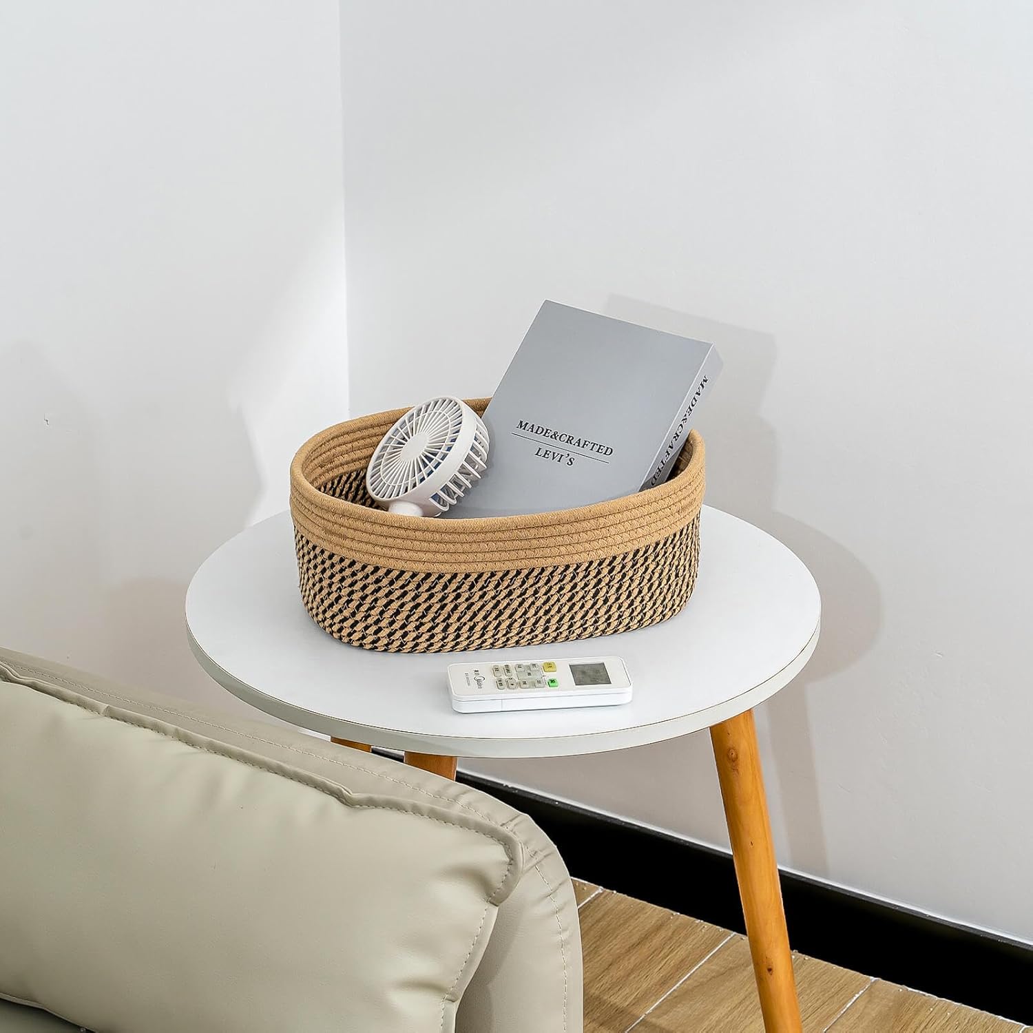 - Classy Natural Cotton Rope Storage Baskets-High quality well made. Very sturdy and a cute modern style. Durable woven rope, Long-lasting, skin-friendly, soft and attractive. You need these adorable baskets to put some supplies in, diaper, jewelry, cosmetics, makeup brushes, tea bags, storing smaller toys, toddler socks, candy