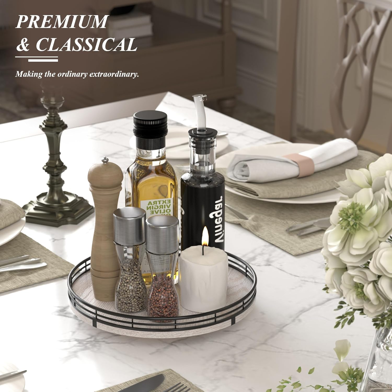 - ππππ πππ πππ ππ: Perfect for a wedding, Birthday, housewarming gift, Mother's Day gift, or centerpiece for any occasions. Tastefully packaged, our turntable organizer makes a thoughtful and practical gift for someone who loves home organization. No assembly was required.