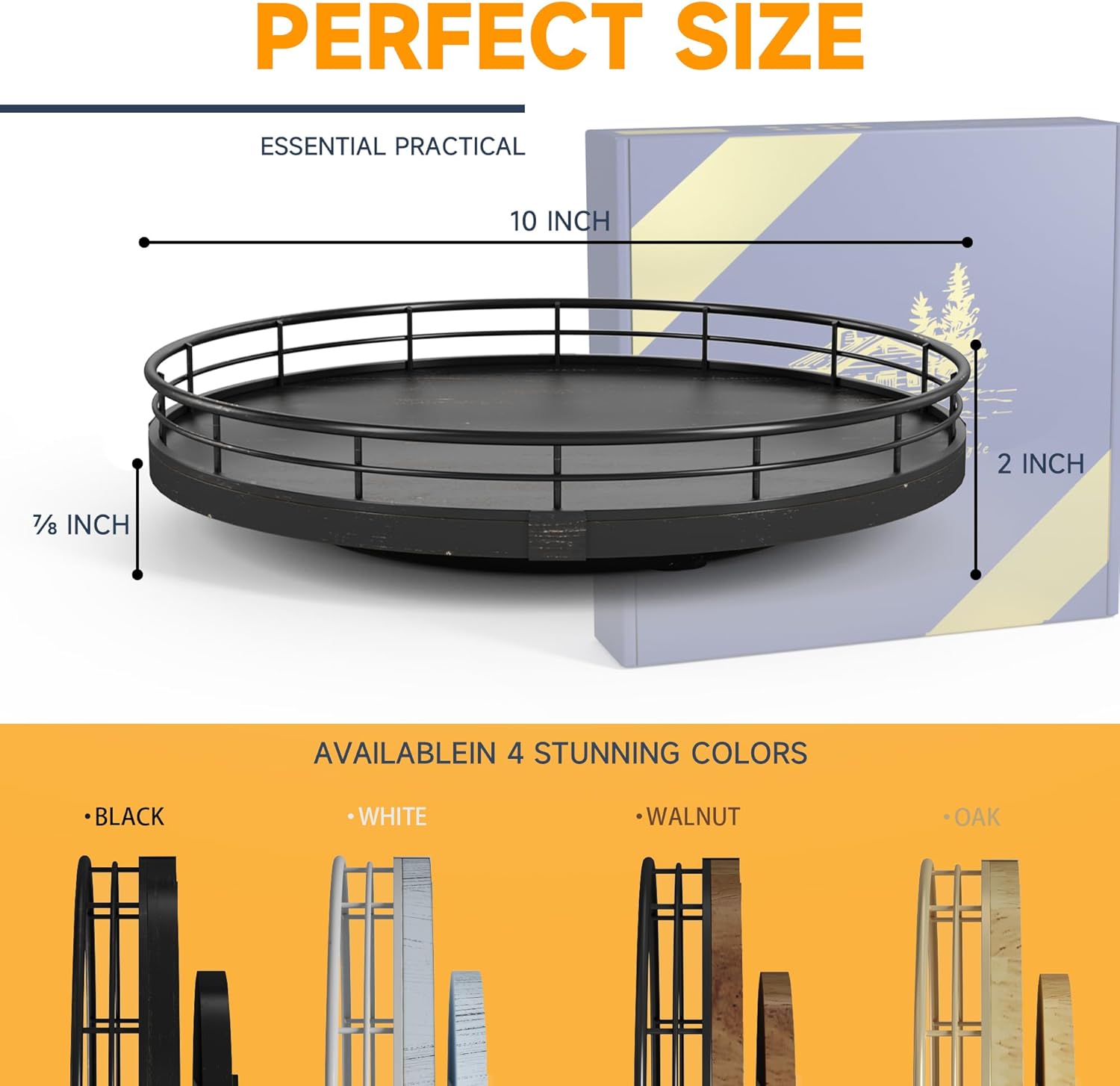 10" Oak Bathroom Vanity Tray Turntable for Perfume Candle, Round Wooden Decorative Tray for Kitchen Sink Countertop Organizer, Bathroom Counter Organizer for Skincare Makeup, Farmhouse Black Gold