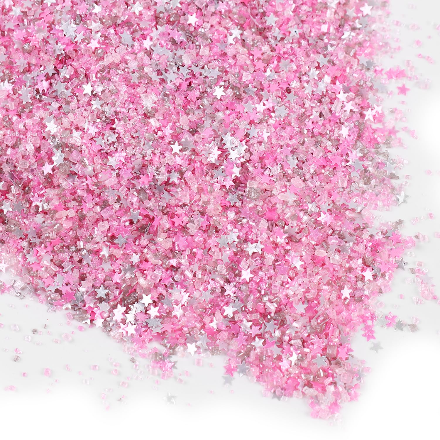 Sanding Sugar Edible Silver Glitter Stars Mix, Edible Pink Sugar Sprinkles for Cake Decorating, Sparkling Edible Pink Sanding Sugar for Cupcake Toppers Cookie Decorations For Wedding Party Celebrations 3.5oz (Pink)