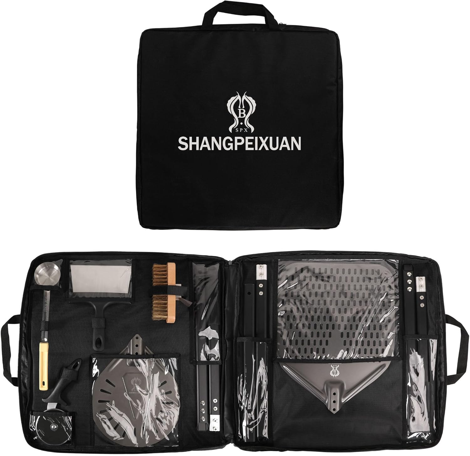 12-inch Hard Anodized Aluminum Pizza Spatula,Set Of 6 Commercial Pizza Oven Utensils, pizza Peel for Indoor & Outdoor Pizza Ovens, Pizza Oven Accessories