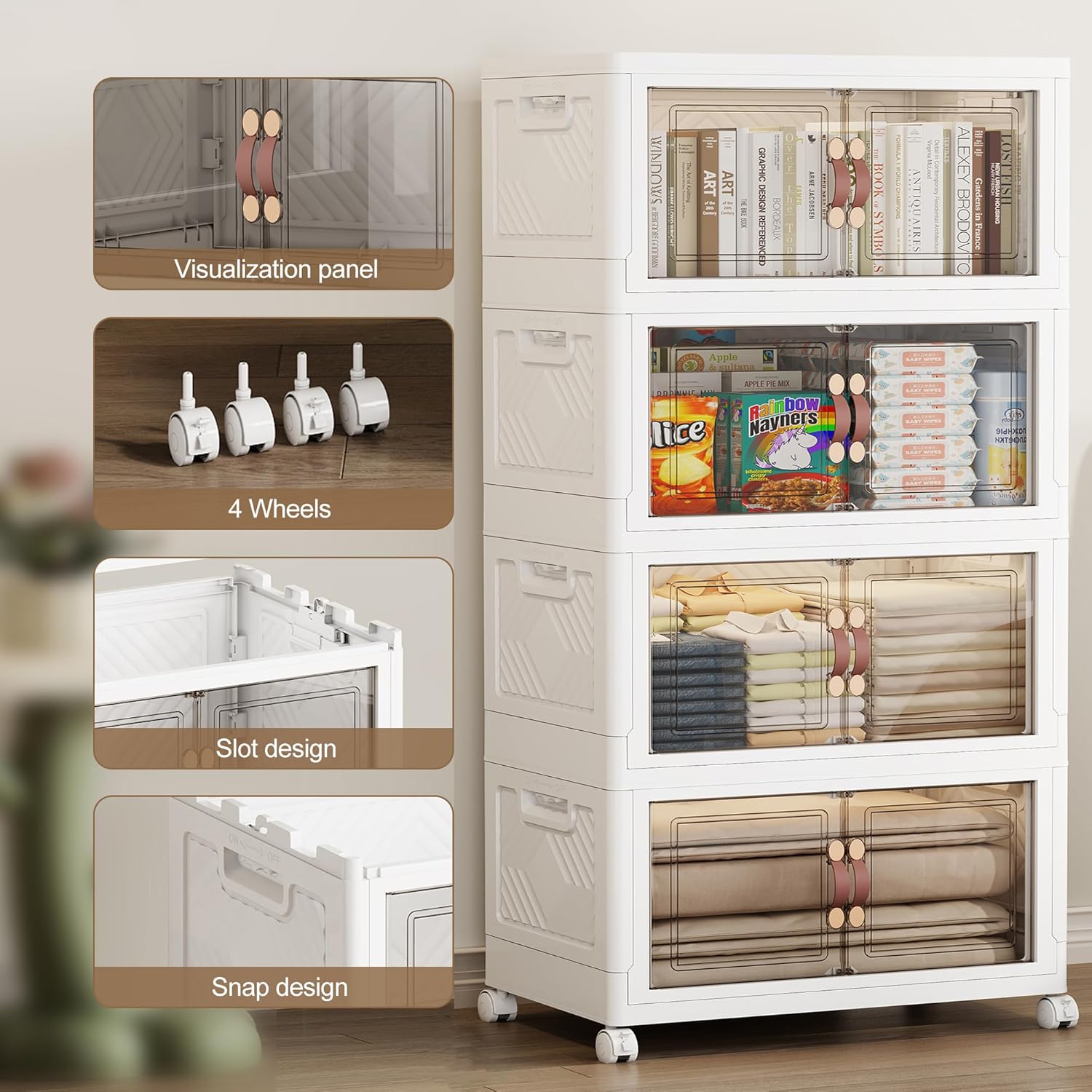 SAILUN 433QT/108 Gal Extra Stackable Storage Bins Large Collapsible Storage Bins with Wheels and Lid, Open Front Folding Closet Organizers and Storage,4Pack 26" W x 17" D x 56.7" H