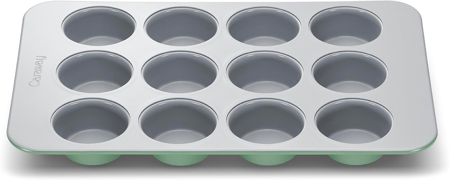 Caraway Non-Stick Ceramic 12-Cup Muffin Pan - Naturally Slick Ceramic Coating - Non-Toxic PTFE & PFOA Free - Perfect for Cupcakes, Muffins, and More - Sage