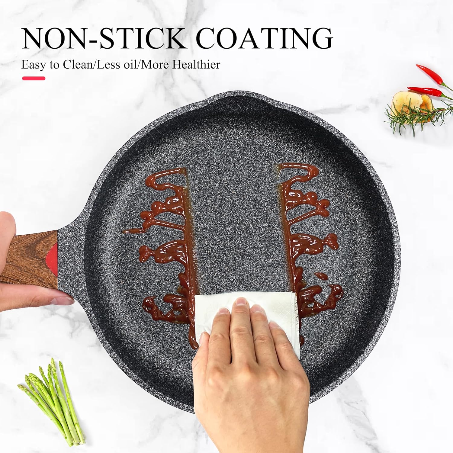 Vinchef Nonstick Frying Pan Anti Scratch,11 Inch Skillet Cast Aluminum Cookware with Wooden Stay Cool Handle, Induction Compatible