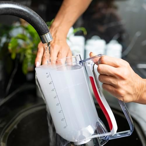 Kid Friendly Mess Free Pancake Cupcake Batter Dispenser Squeeze Handle for Precise Portion Control, Great for Waffles, Crepes | 4 Cup Capacity (Red)