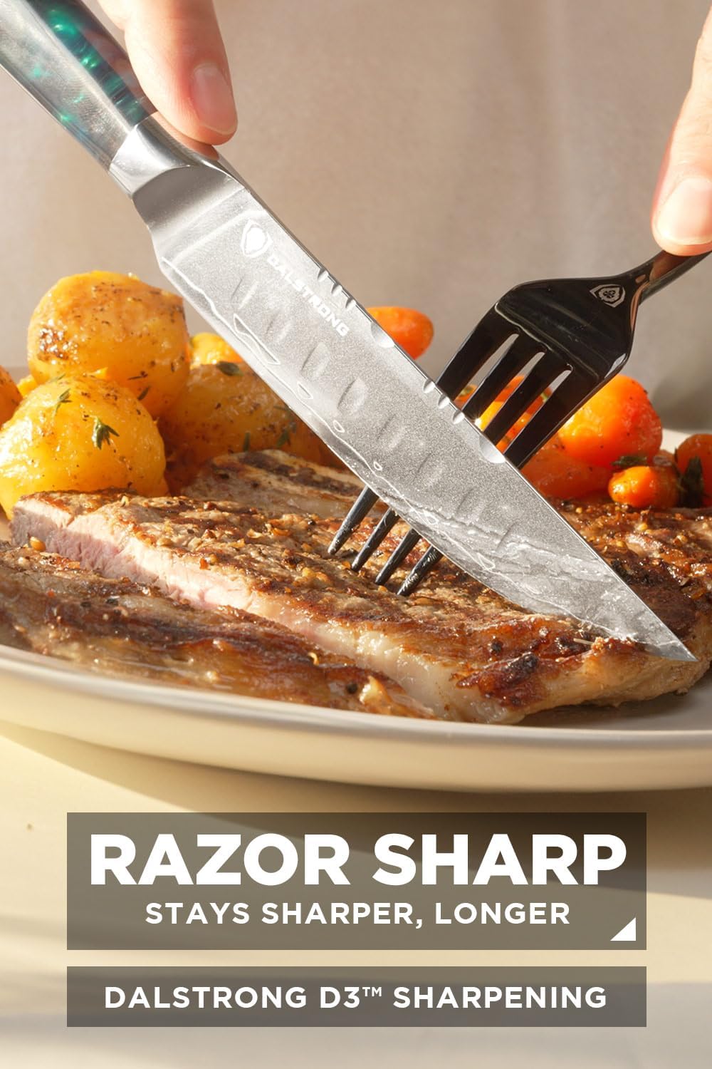 - Unleash the Feast: Give your steak the treatment it deserves with this set of four 5" straight-edge steak knives, crafted to slice cleanly through meat for enhanced texture and tenderness. Each blade is enhanced with Dalstrong’s D3 Sharpening for a razor-sharp edge – precision-polished to a lasting 8-12°, ideal for savoring every bite.