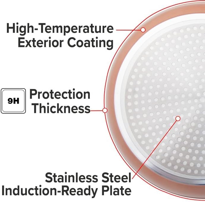 - INDUCTION READY & EVEN HEAT DISTRIBUTION – Every cookware is bonded and reinforced with anti-warp SS plate on the bottom to make it induction ready. This bonding delivers fast, even heat distribution, and superior heat retention at any temperature.