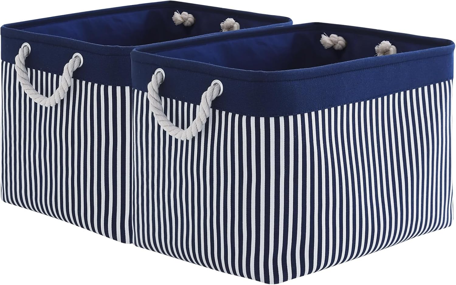 TcaFmac Organization and Storage Basket for Shelves - Large 2 Pack 16x12x12 inch Fabric Storage Cubes, Collapsible Storage Bins for Gift Closet Cloth Toy Books Kids (Navy Patchwork)
