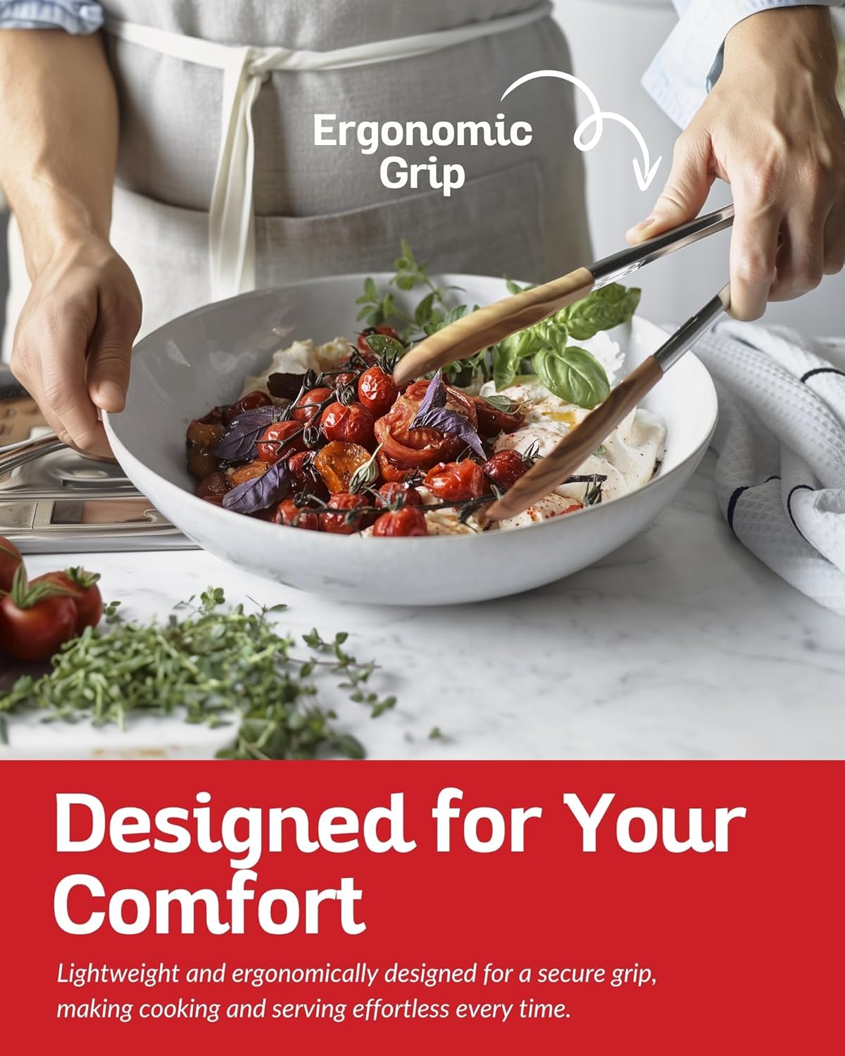 - SCRATCH-RESISTANT: Equipped with wooden tips, these tongs are gentle on non-stick cookware, minimizing the risk of scratches and wear. Olive wood is heat-resistant, making it suitable for nearly all cooking tasks.