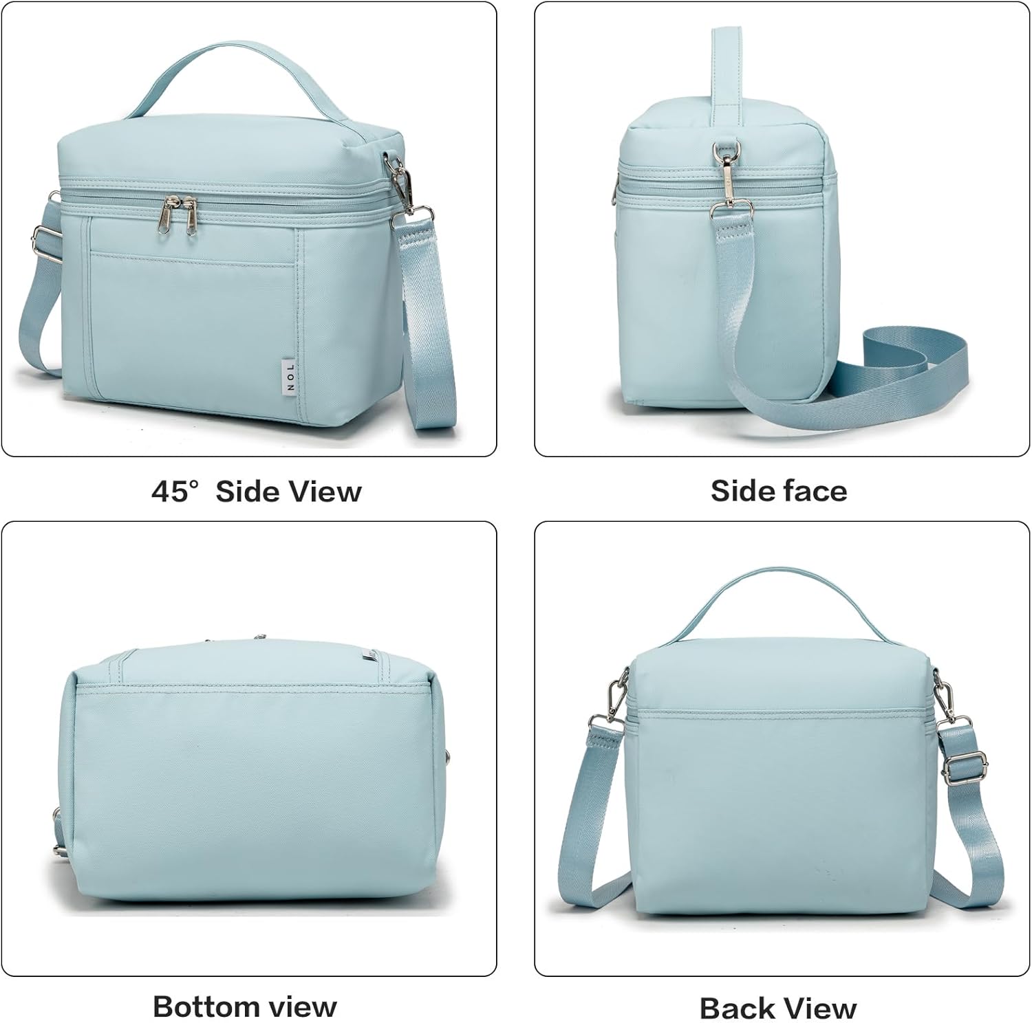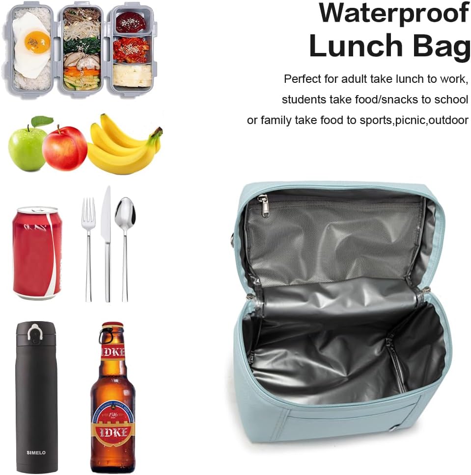 NOL Natural Organic Lifestyle Insulated Lunch Bags for Women Cooler Bag Lightweight Nylon Waterproof Lunch Box For Work (Light blue, Medium(normal))
