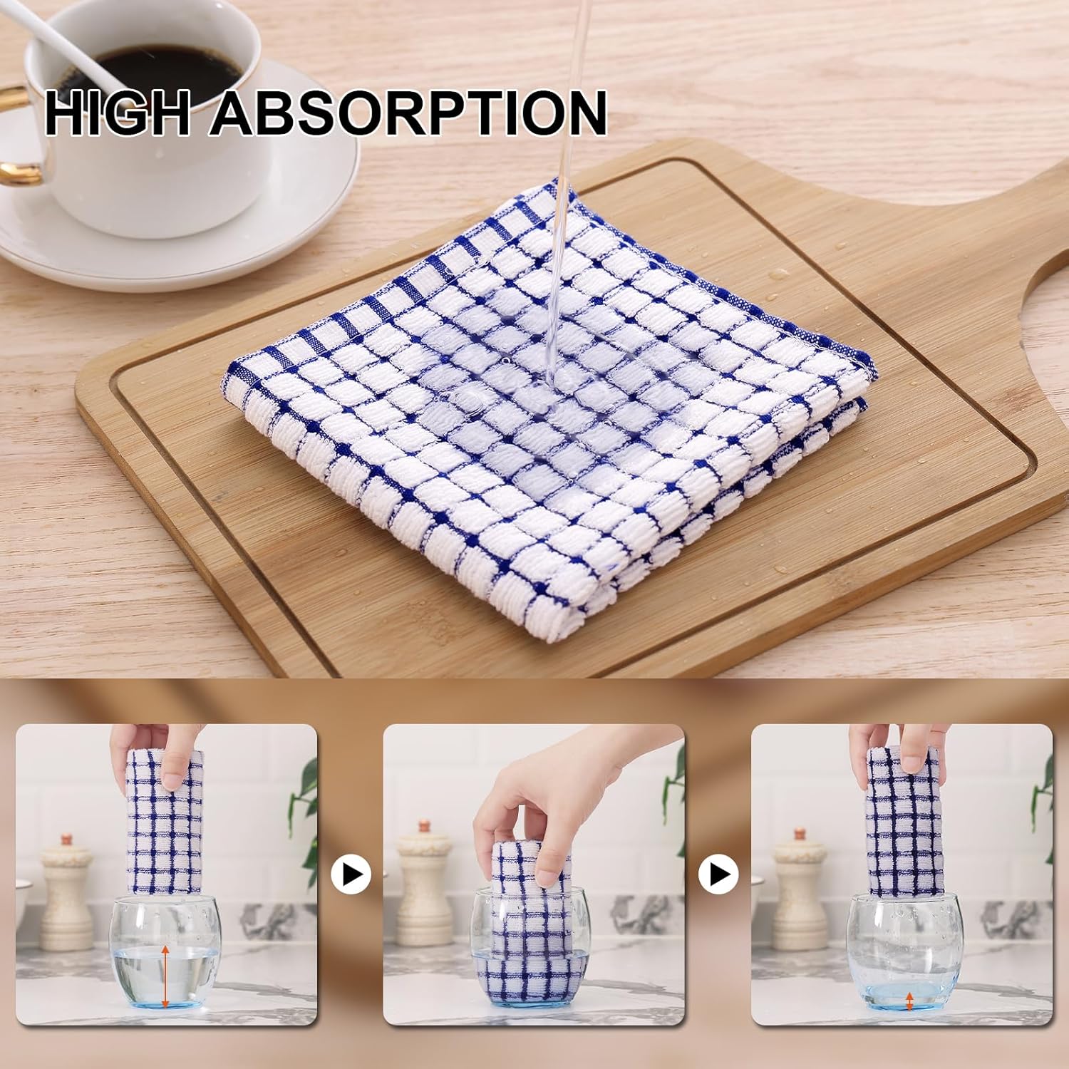 Kitinjoy Cotton 8 Pack Terry Kitchen Dish Cloths, 12 x 12 Inches Super Soft and Absorbent Dish Rags, Quick Drying Dish Towels for Washing Dishes, Blue