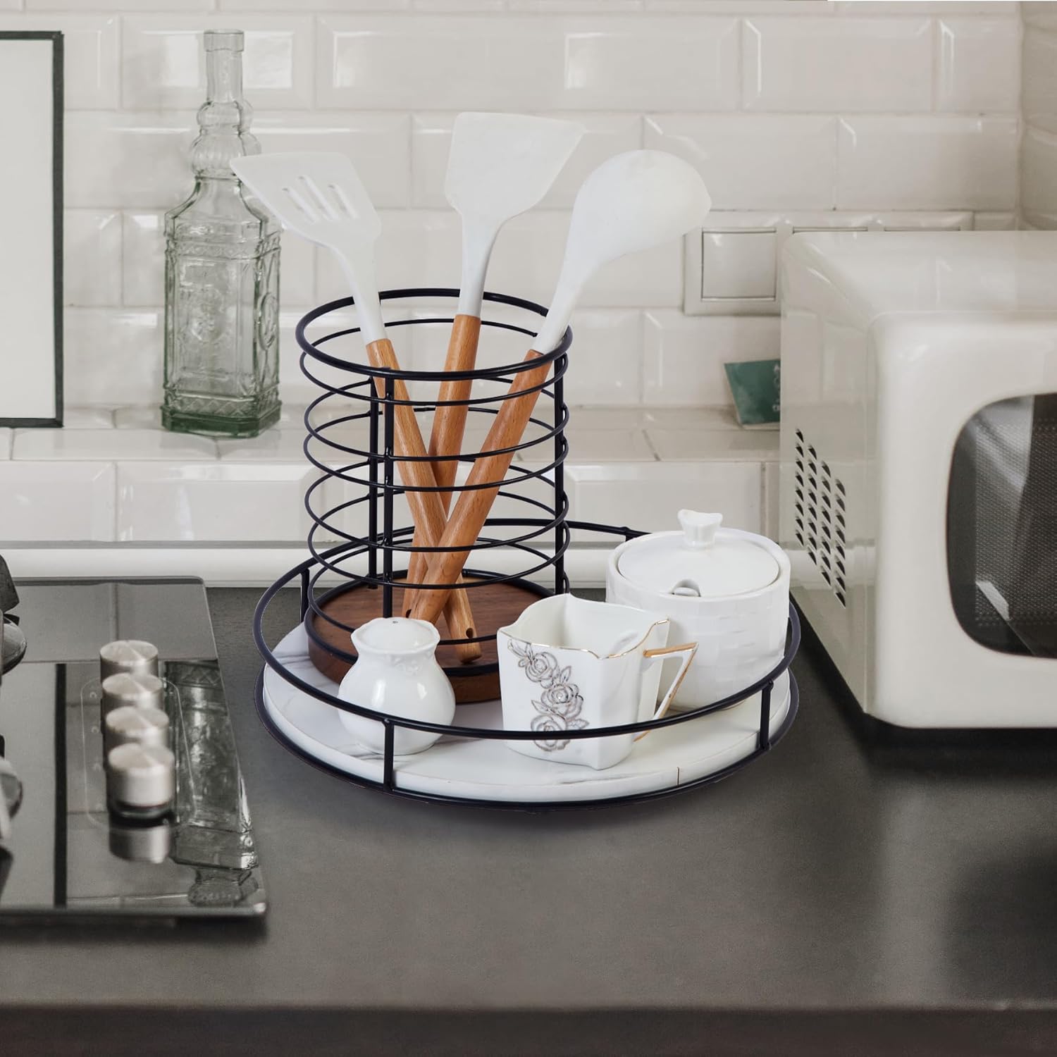 - Dimension:Product size (including base):12" x 2.5", iron frame edge height: 1.8". Sized to fit condiments, spices, baking supplies