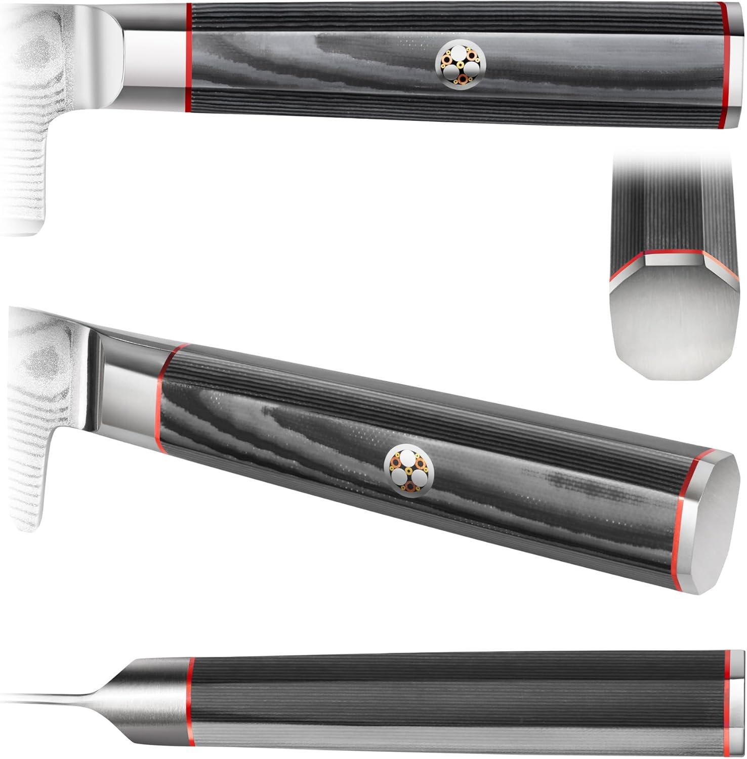 - Forged from 67 layers of Cangshan's proprietary X-7 Damascus Steel.