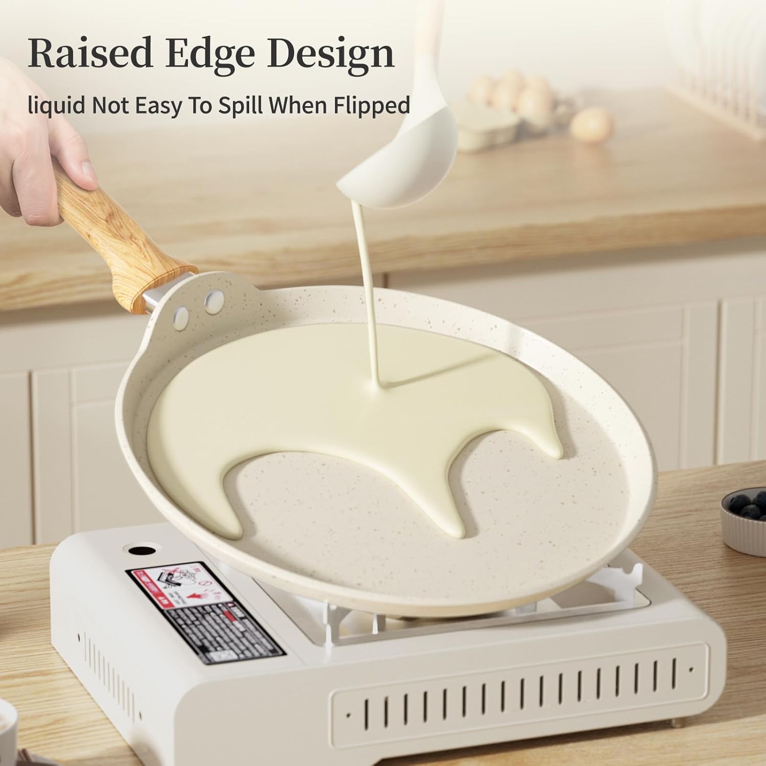 - 【Cooking A Wide Variety Of Delicious】The 10 inch flat pan meet the needs of the whole family. The flat griddle pan adopts 0 degree flat base design, ensures the crepe batter is evenly distributed on the centered of the omelet pan, not flowing around. The 0.6 inch raised edge design ensures the liquid not easy to spill when shaken or flipped. The tortilla pan for stove top is featuring corrosion resistance, perfect for crepes, tortilla, dosa tawa, toast, pancakes, eggs, omelet, bacon and more