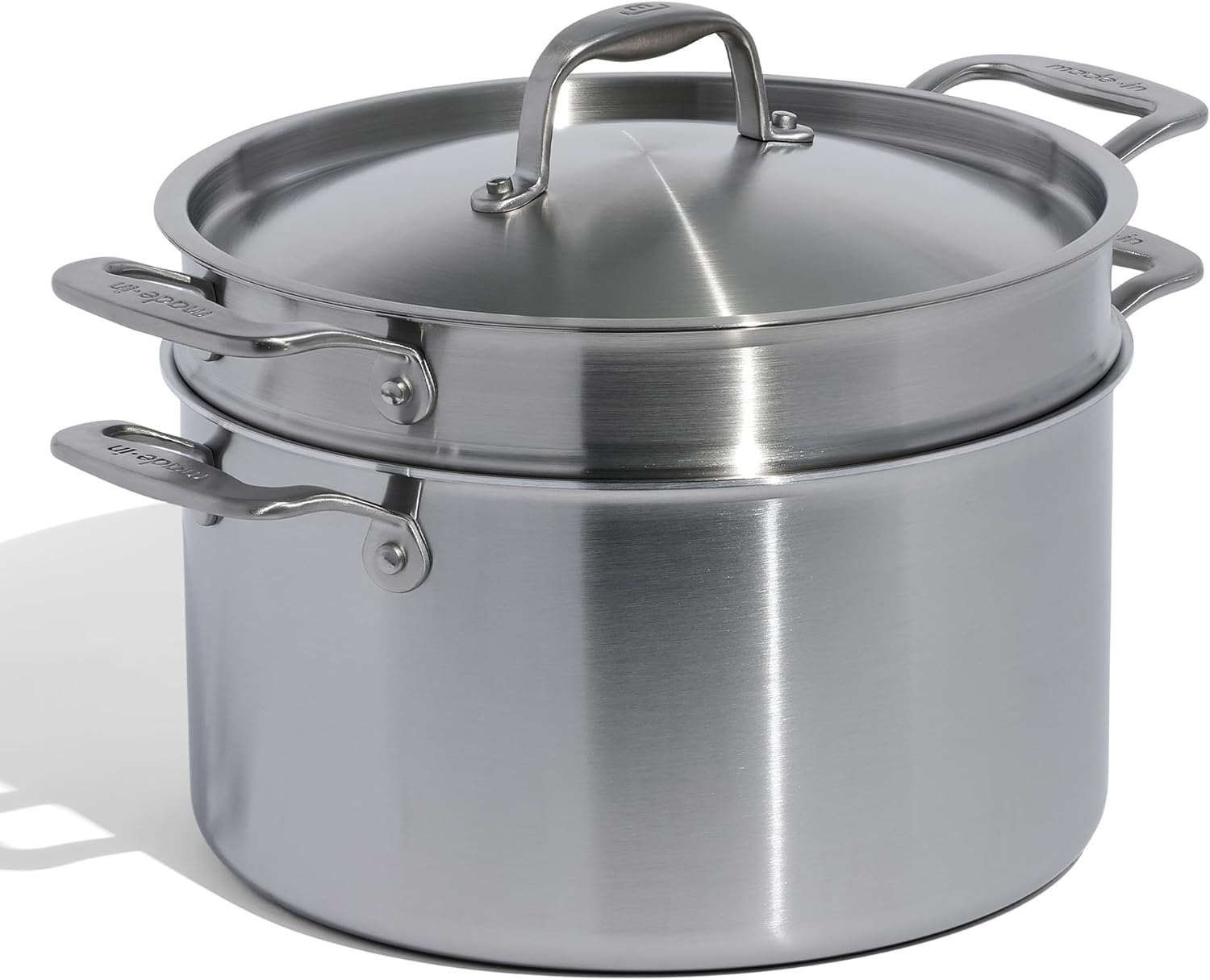 Made In Cookware - 8 Quart Stainless Steel Stock Pot With Lid and Pasta Insert - 5 Ply Stainless Clad - Professional Cookware - Crafted in Italy - Induction Compatible