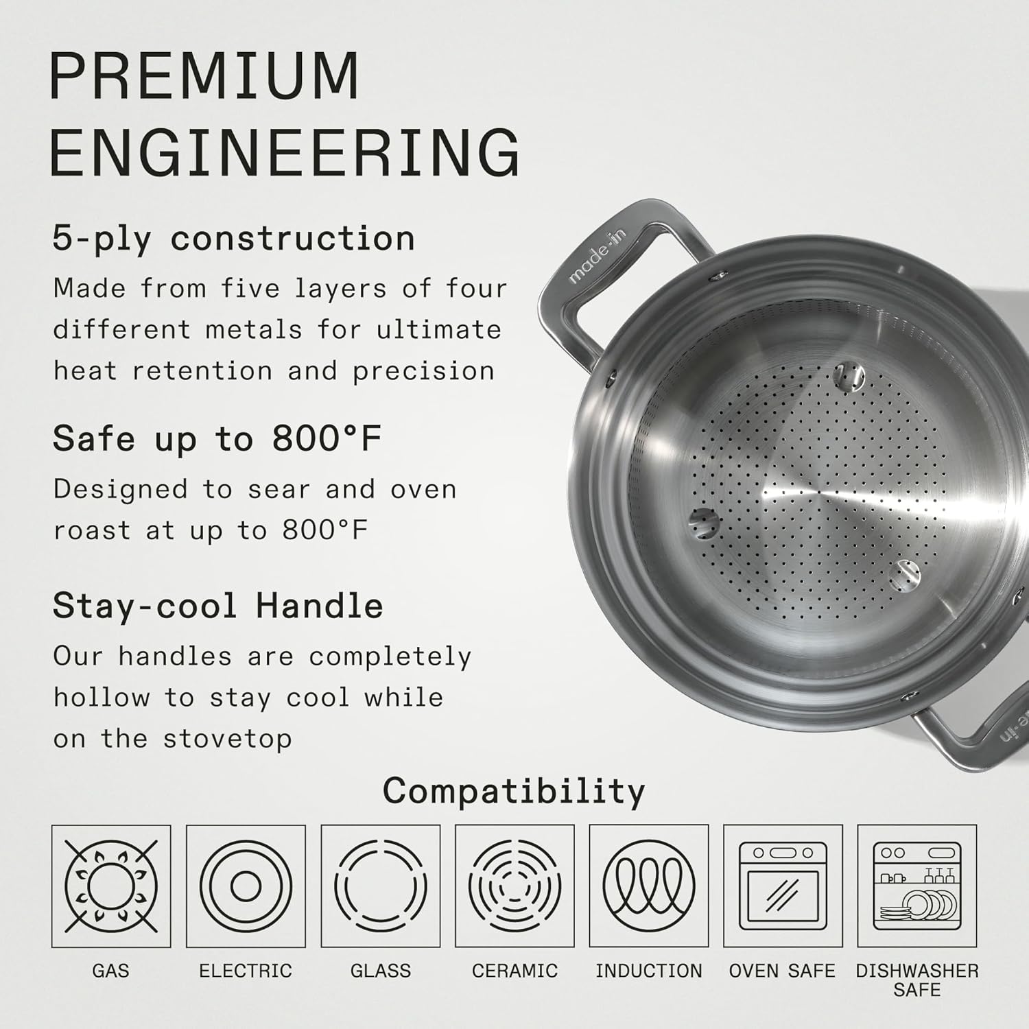 - Essential for Every Kitchen - The Made In Stainless Clad Stock Pot is a must-have kitchen tool, offering maximum heat control, responsiveness, and versatility to elevate your cooking experience