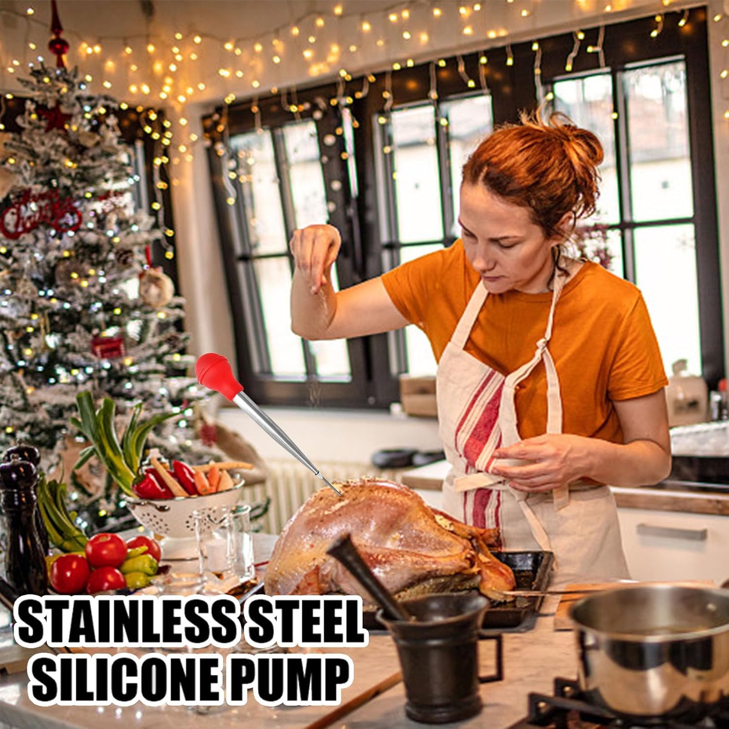 - Different size needles: Two Baster syringe needles of different sizes can meet different injection seasoning needs. It can tenderize meat and poultry and add flavor, used to keep dietary moisture, such as minced garlic/honey butter, or even some coarser marinades. The Roast Chicken Syringe Kit is the perfect assistant to add flavor to the kitchen.