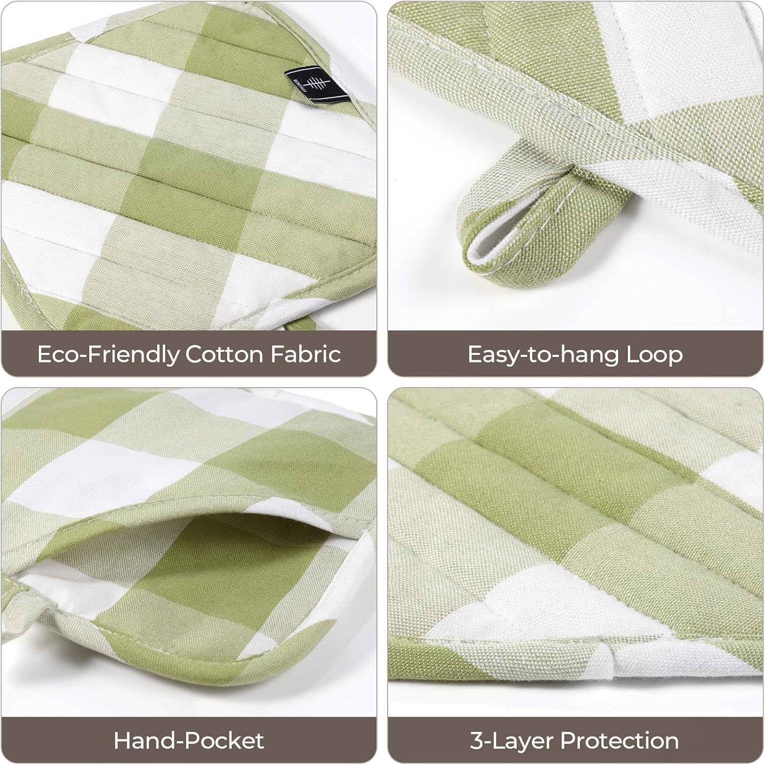 - [Kitchen Decor] These pot holders come in a variety of stylish and classical plaid designs, adding a touch of elegance to your kitchen decor. The loop on each pot holder allows for easy hanging storage, keeping them within reach whenever you need them.