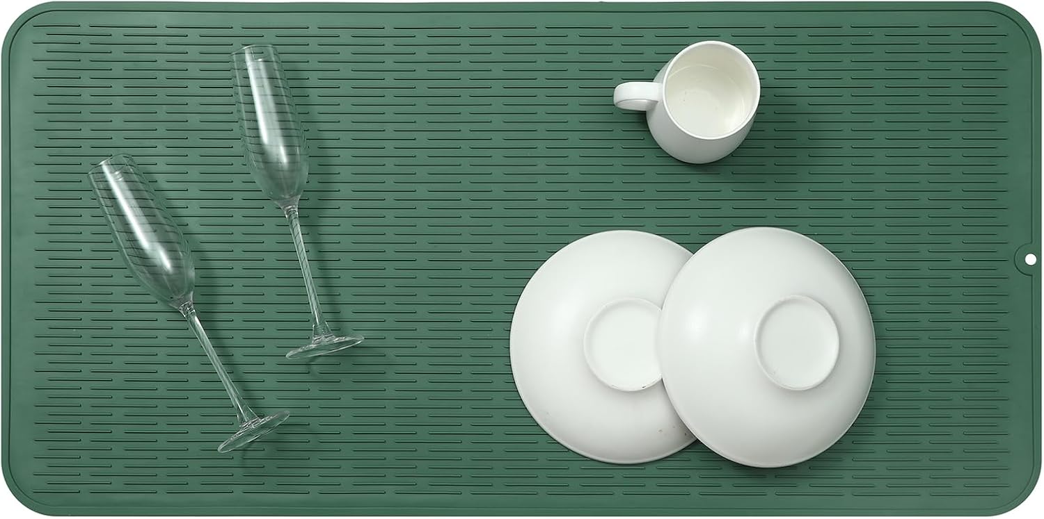 Silicone Dish Drying Mat for Multiple Usage,Easy clean,Eco-friendly,Heat-resistant Silicone Mat for Kitchen Counter or Sink,Refrigerator or Drawer Liner Green 5XL 36inches x 18inches