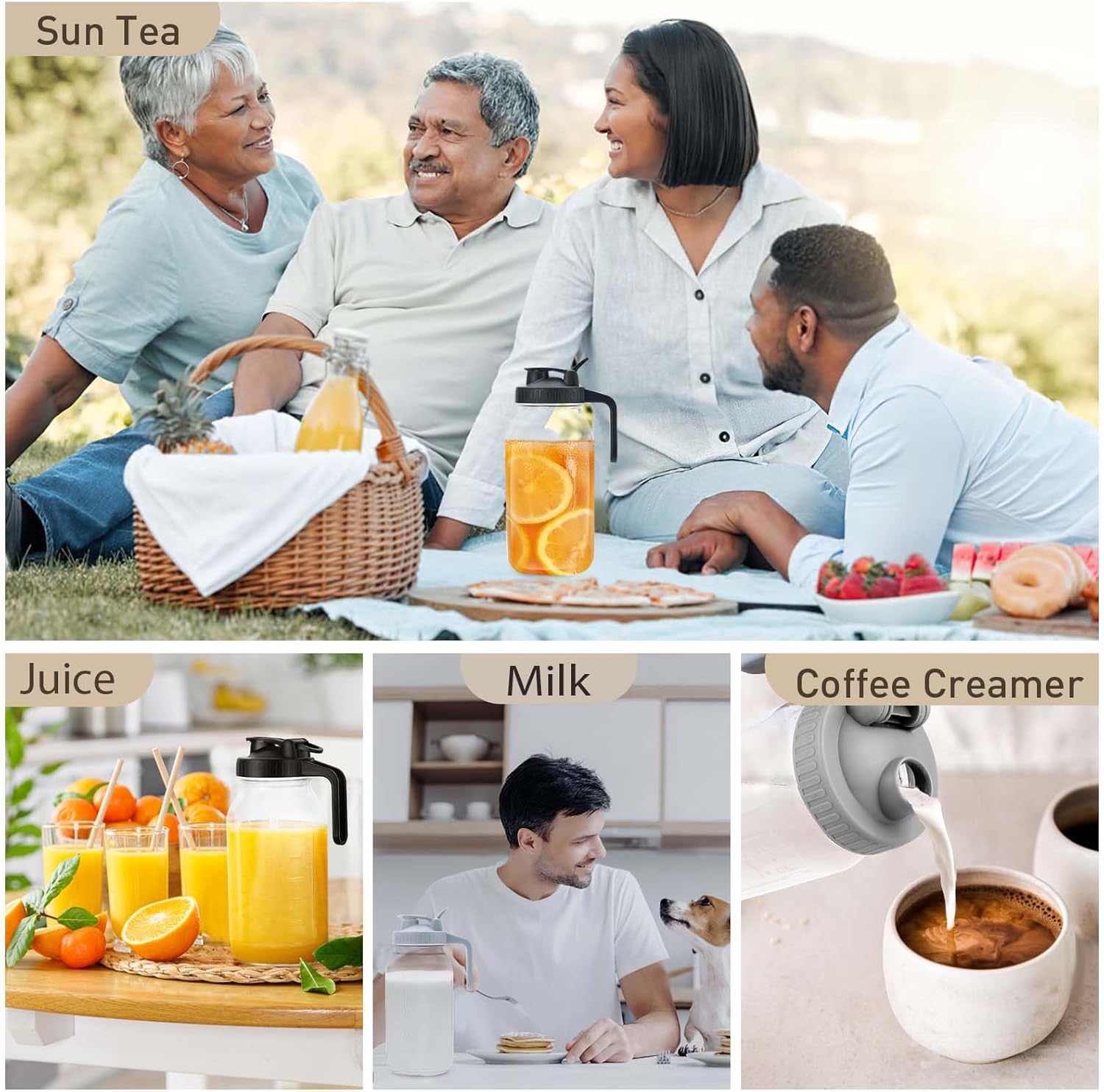 - Convenient Lid with Handle: We've designed the lid with an ergonomic handle for easy one-handed use. The spout allows you to pour with precision, eliminating the annoyance of drips on your table