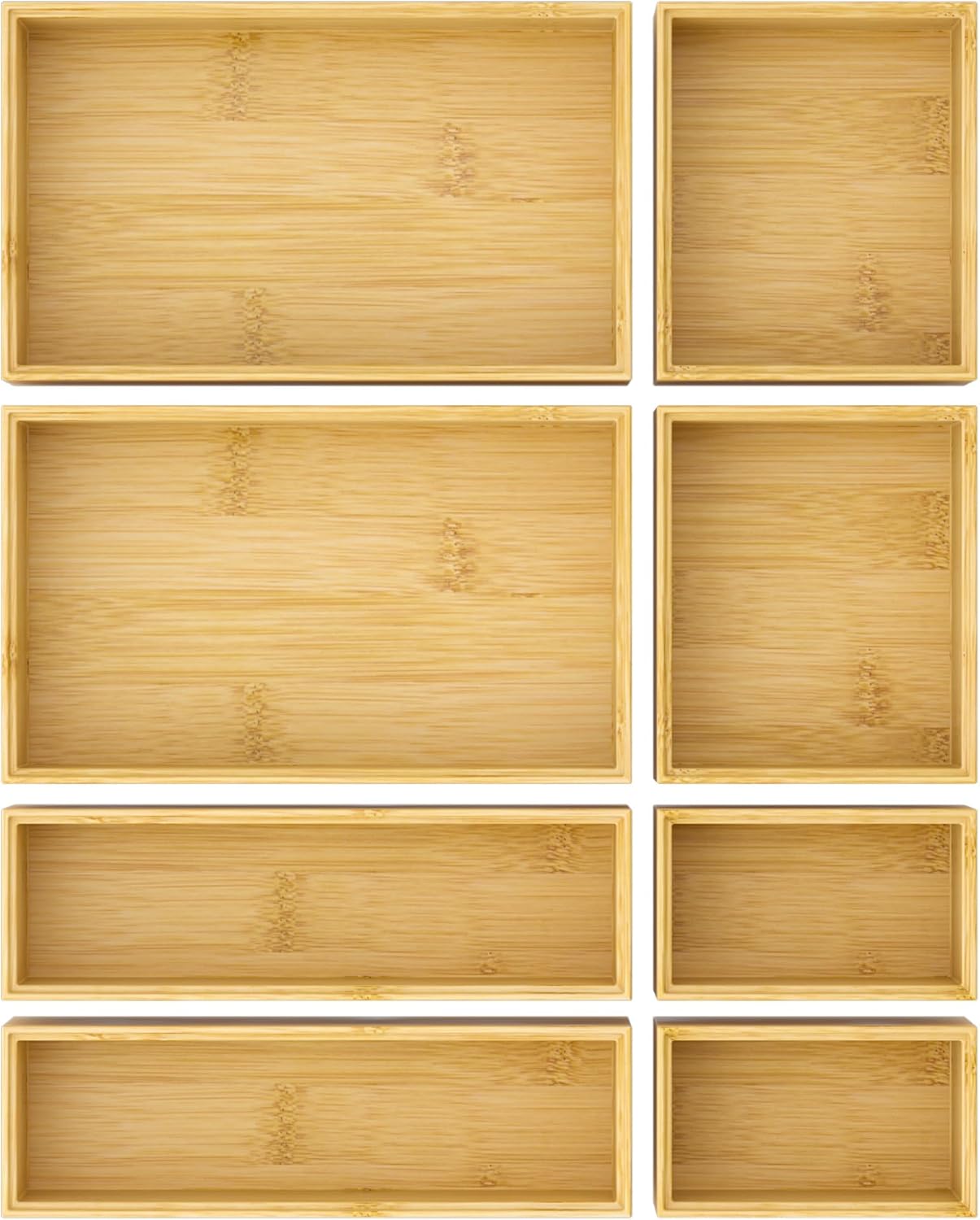 Bathroom Drawer Organizer Trays, Bamboo Silverware Drawer Organizer Kitchen Utensils, 8 PCS Wood Box Stackable Bins for Makeup, Office Desk, Vanity, Junk Drawer