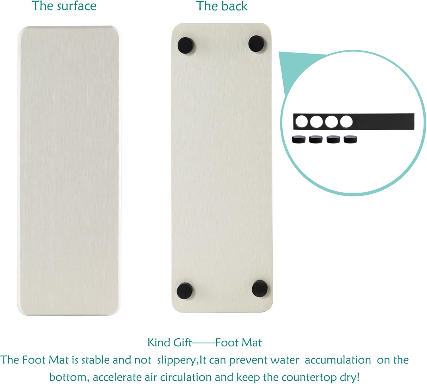 - Made from natural Diatom mud and plant fiber, small holes within diatomite enable it have amazing water absorption. They could absorb water and gets dry in a few minutes. It makes the Bathroom Counter top more dry and tidy.