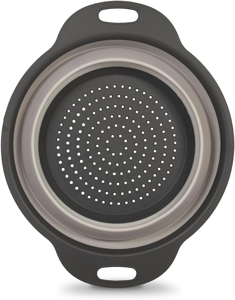 Glad Collapsible Colander Strainer - 2L | Small Pasta Drainer for Kitchen, Vegetables, and Fruit | Round Plastic Foldable Draining Basket for Easy Storage,Grey