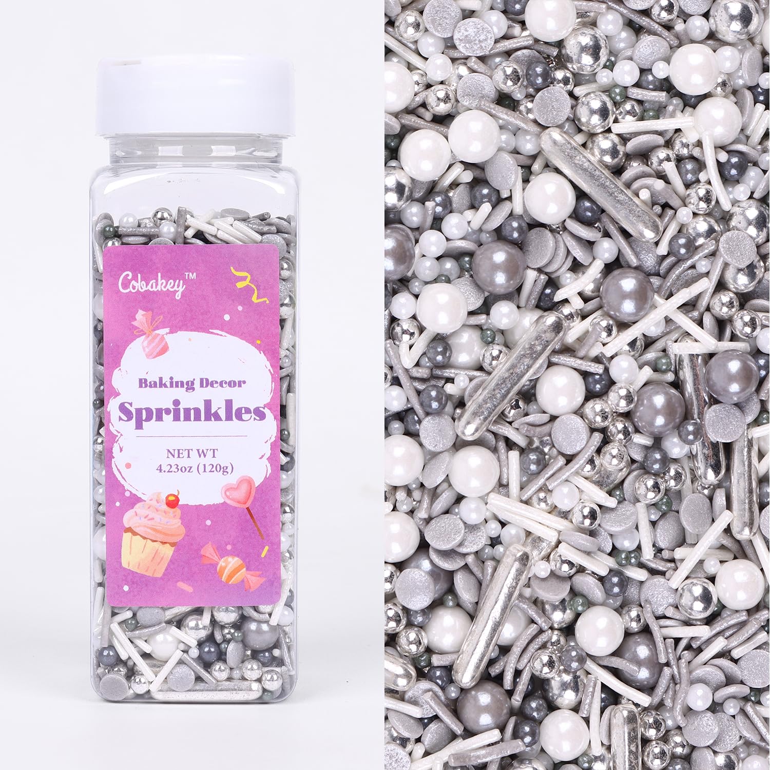 Gray & Sliver Sprinkles for Cake Decorating 4.23ounce - Sugar Mix Contains Metallic & Pearl Sprinkles for Cupcake Toppers, Ice Cream, Candy, Cookie Decorations - Holiday Party Supplies