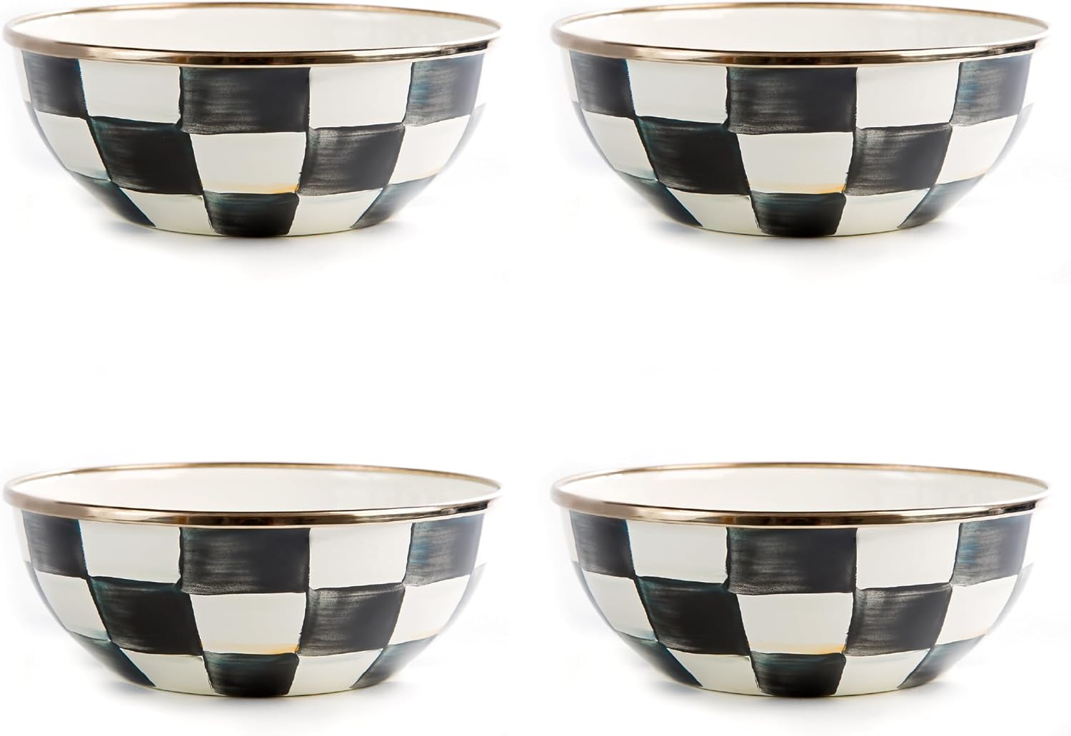 MACKENZIE-CHILDS Enamel Everyday Bowl, Serving Bowl for Entertaining, Extra-Small, Black-and-White Courtly Check, Set of 4
