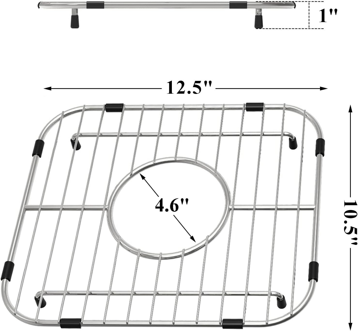 - Sink Grid Dimension - Length 12.5" x width 10.5", 1.5" corner radius. Please measure twice before purchasing. How to Measure: Please measure inside 1" from bottom of your ink to get the right size of grid. Not top inside of sink. There is side bumper on the grid, so please reserve at least 1/2" for both length and width with your measured size.)