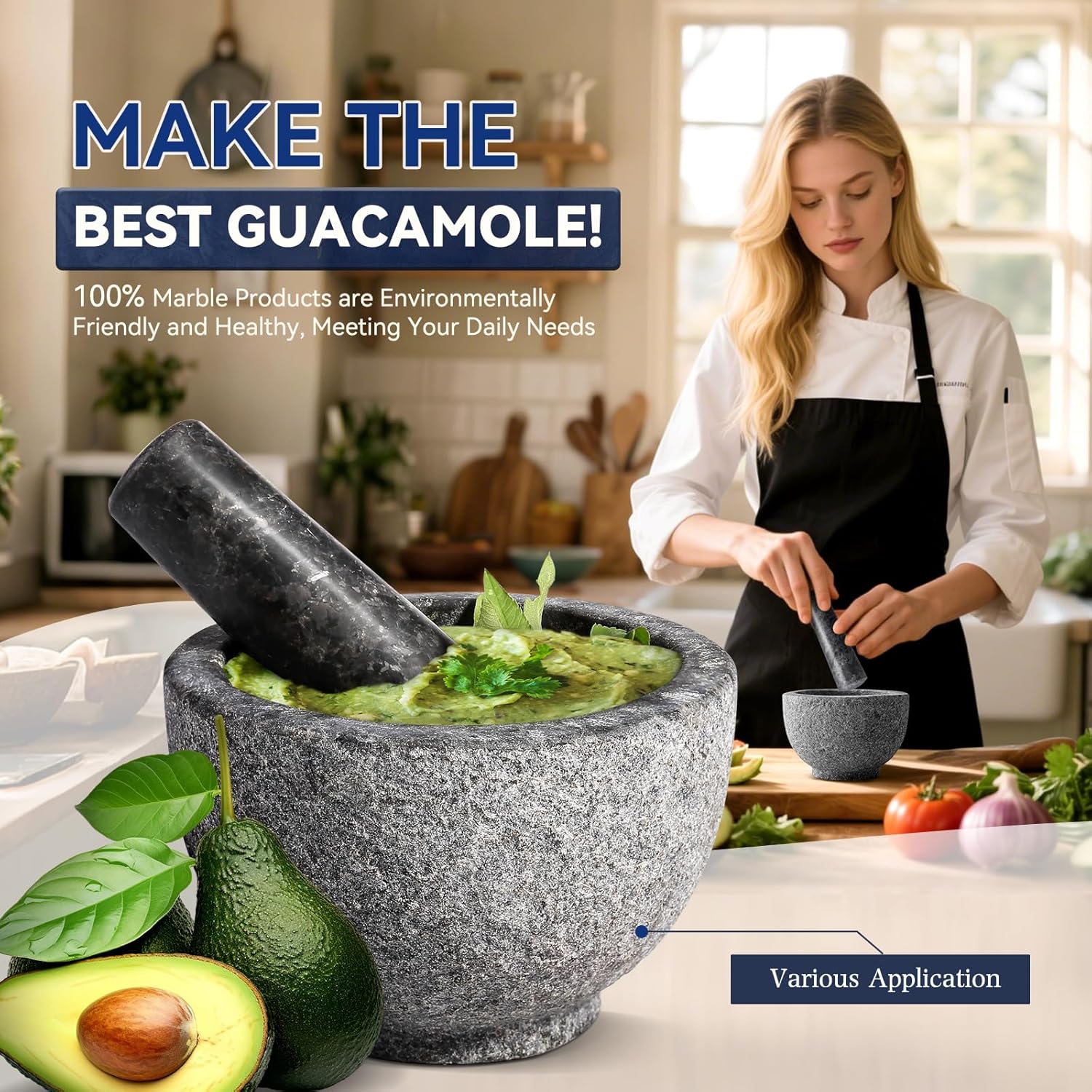 - 【Healthy and Safety】The marble mortar and pestle set is super safe in contact with food. Natural stone has superior safety properties that will not spoil the flavor of food or leave food residue, The external is well-polished, super easy to clean.