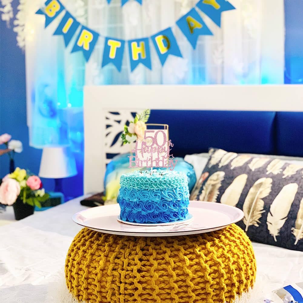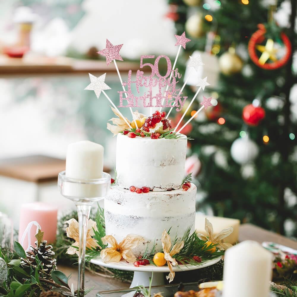 Glittery 50th Happy Birthday Cake Topper with Star,Personalised 50 Birthday Cake Toppers Party Decorations Party Supplies for Men Women Rose Gold