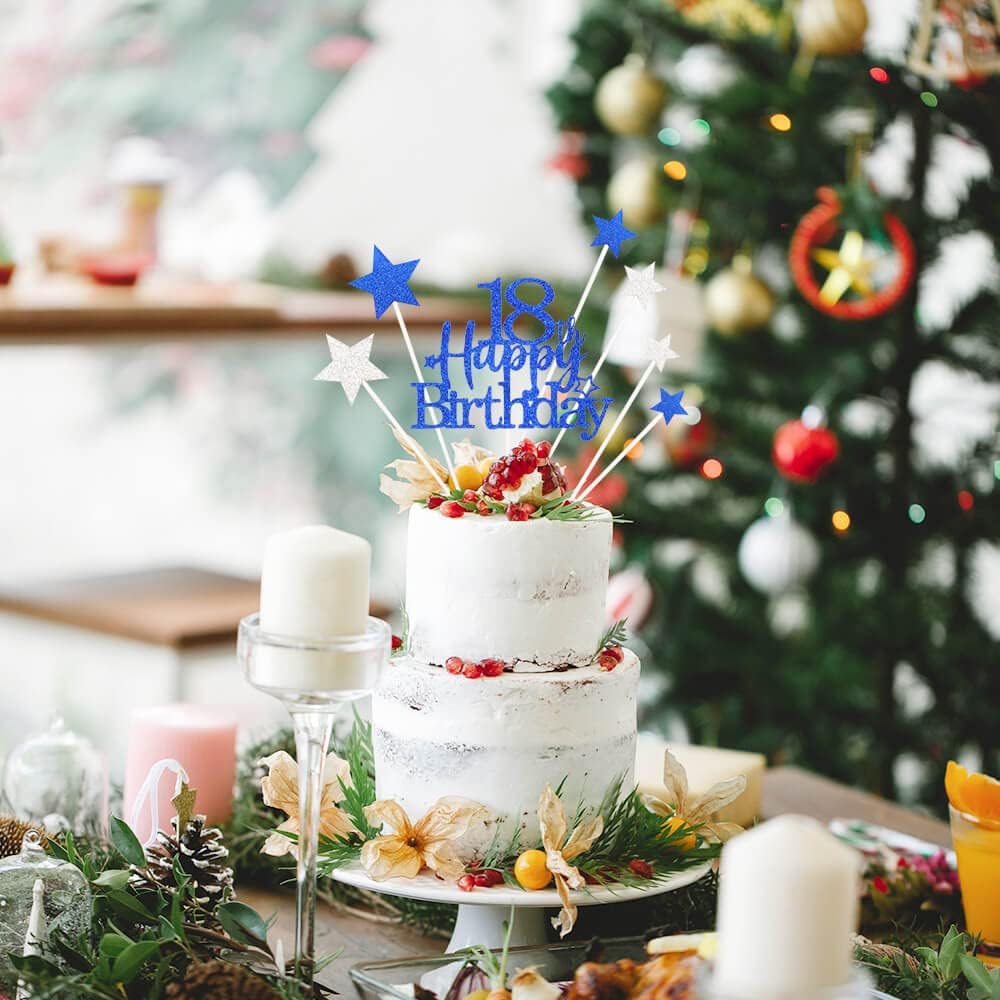 Glittery 18th Happy Birthday Cake Topper with Star,Personalised 18 Birthday Cake Toppers Party Decorations Party Supplies for Boys Girls Blue