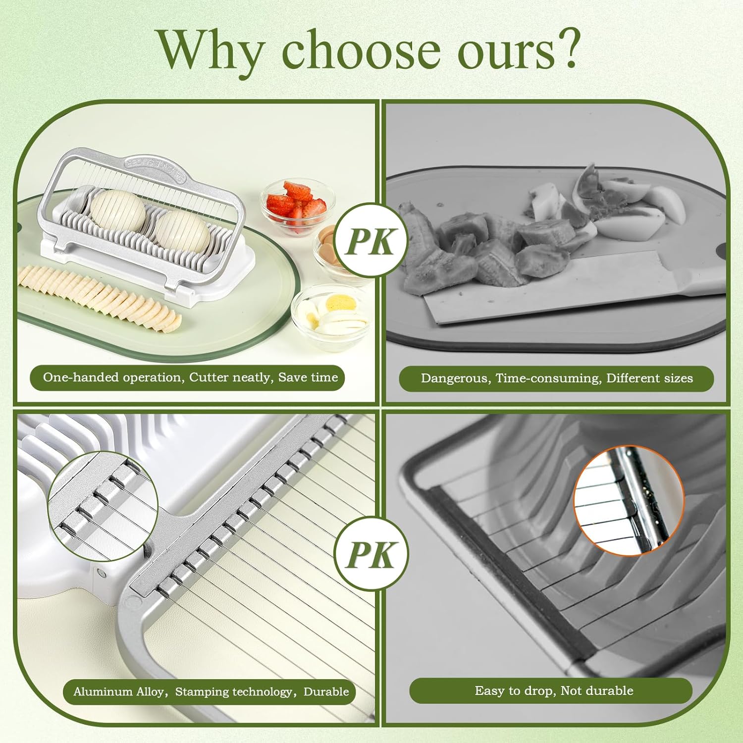 - Multifunctional Slicer: Perfect for slice Egg, Skin-less hotdogs, Banana, Strawberries, Long dough, Kiwis, Butter, and Any soft Fruit.