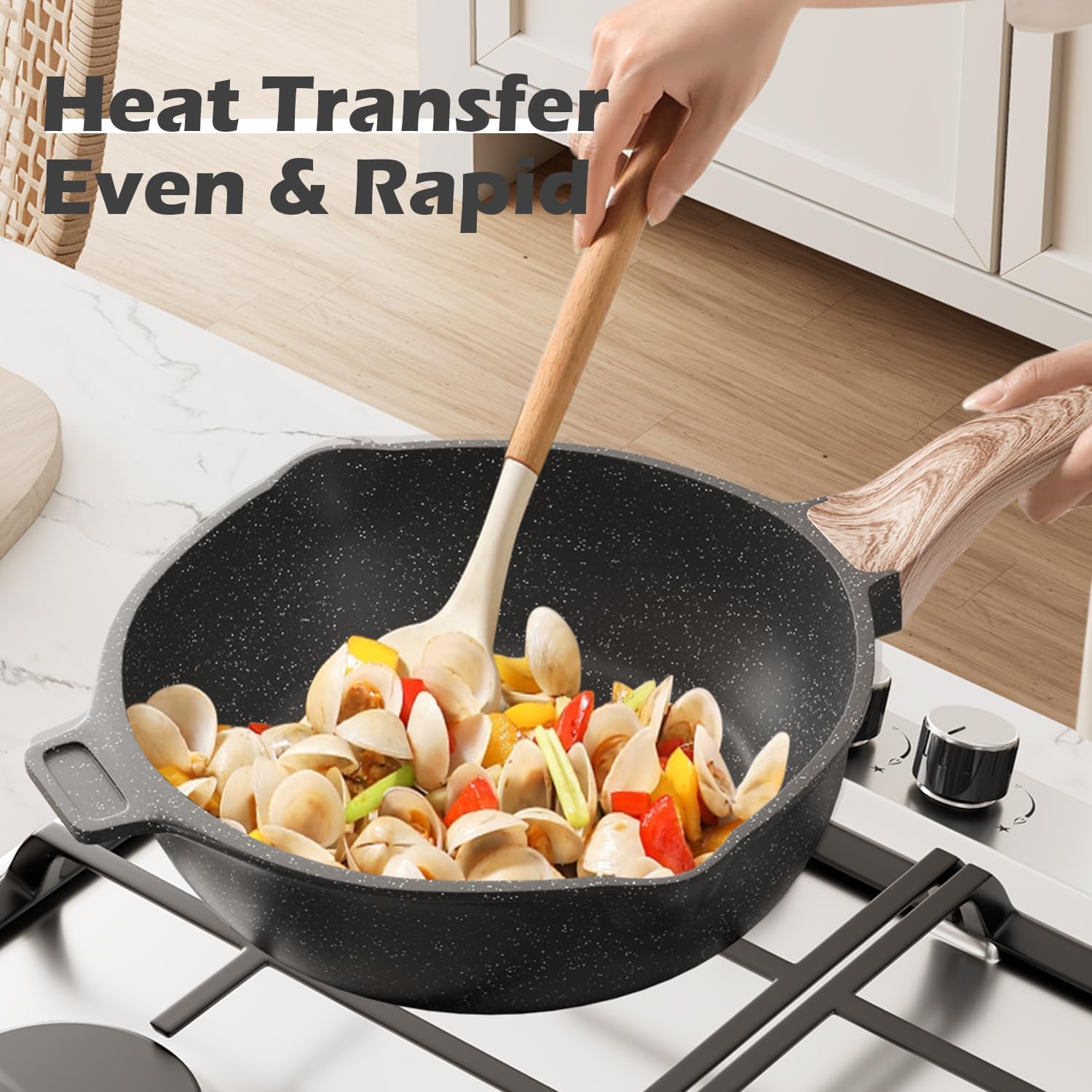 - Caannasweis Granite Non-stick Coating: When you embark on the journey of buying cookware, the non-stick ability is a crucial factor that simply can't be overlooked. Non-stick isn't just a minor convenience; it's a game-changer that completely transforms the way we cook. Gone are the days when you had to struggle with a spatula to pry the food off the pan's surface. Instead, the food will effortlessly glide across the surface and be cooked to a perfect color.