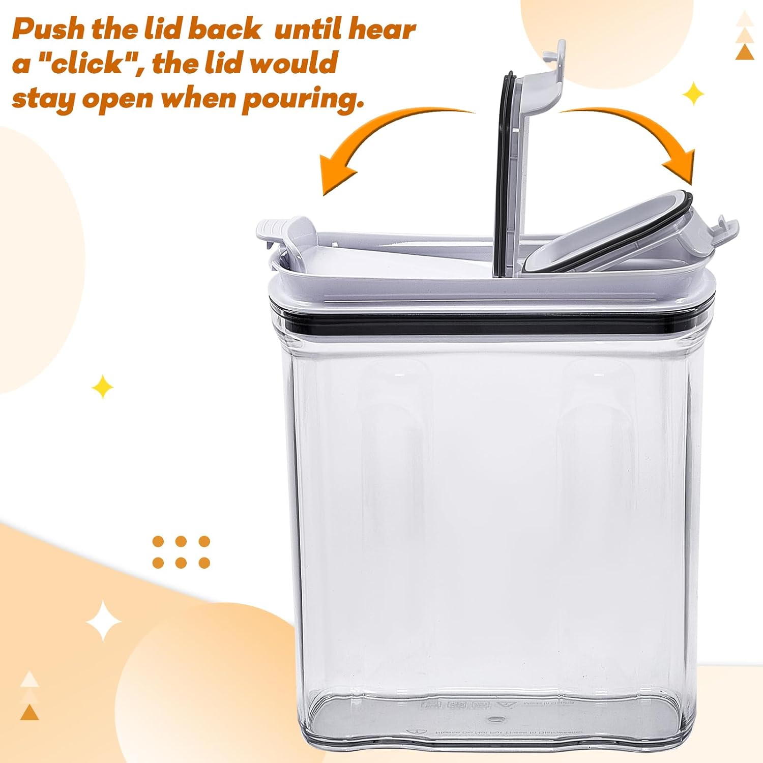 - HIGH QUALITY & VERSATILE - These food storage containers are made of high-quality food grade BPA-free plastic; They are transparent so you can always know what is inside and how much is still there; The storage containers with lids are not only ideal for storing cereals but they are also great for storing flour, brown sugar, rice, grains, pasta, snacks, nuts, coffee and even pet food