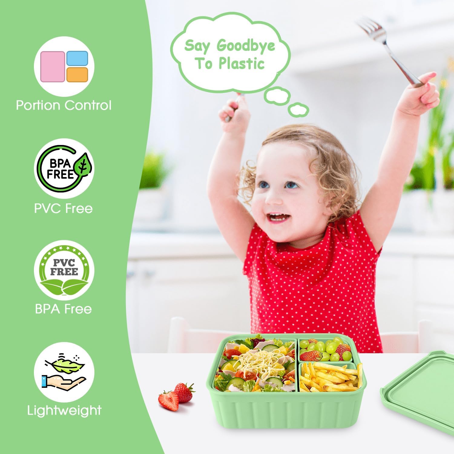 - 【 Premium Silicone & Reusable】Perfect alternative for disposable plastic container to avoid harmful chemicals into your food and environmental pollution. The silicone kids lunch containers are made of eco-friendly and food-graded silicone,sturdy,soft,BPA-FREE,odorless,durable,easy to clean.... No landfill.... Less waste. Save Time & Money