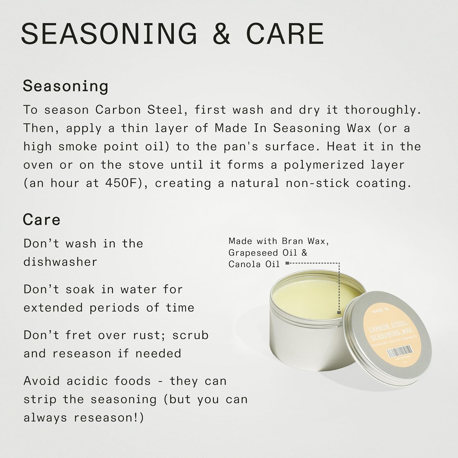 - Loved by Chefs Worldwide - Made In Carbon Steel delivers restaurant-quality sears on proteins and veggies while developing a mesmerizing non-stick surface with proper seasoning and regular use