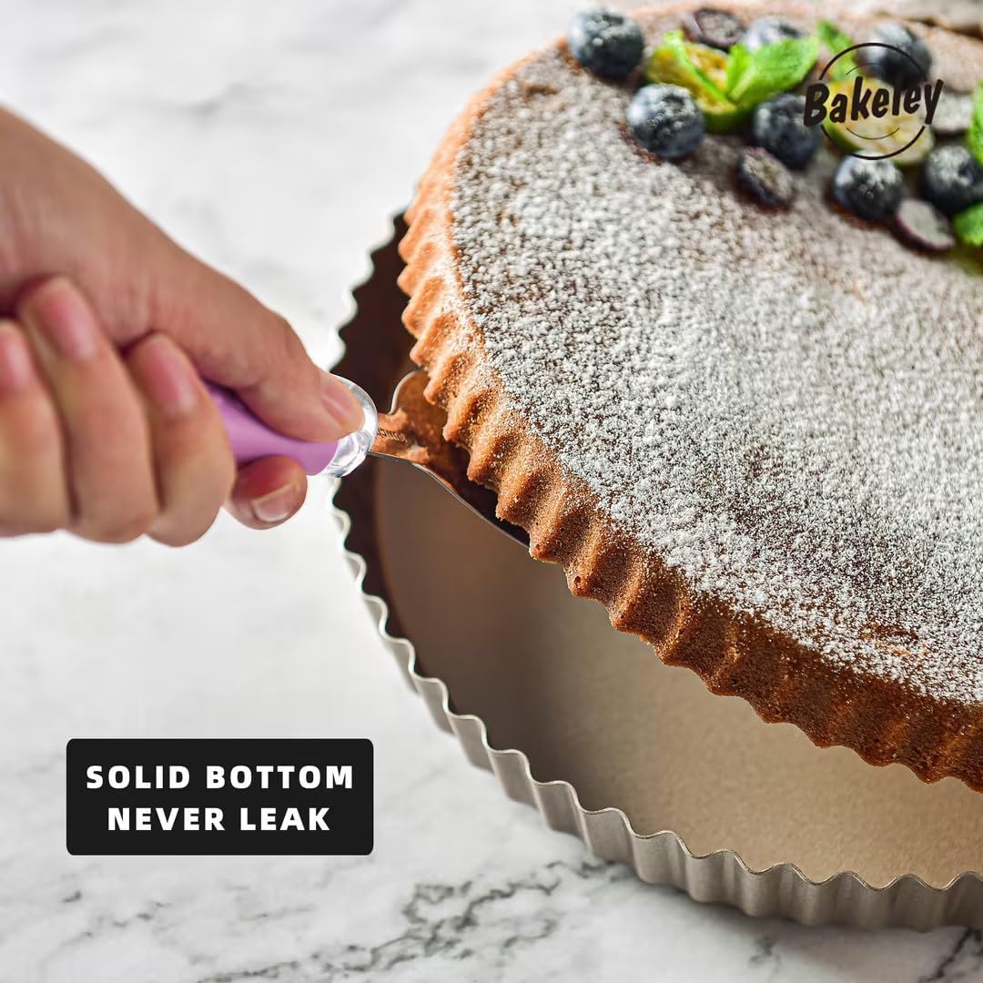 - 【Versatile Use for Baking】Bakeley tart pan is ideal for making quiche, cheese cakes, chocolate cakes, tarlets, fruit flans, pizza, egg tarts and others. Bakeley tart pans are perfect for any kind of tarts. Crust slides out of the pans so well, and it’s a good choice for hobbyists, bakers and chefs.