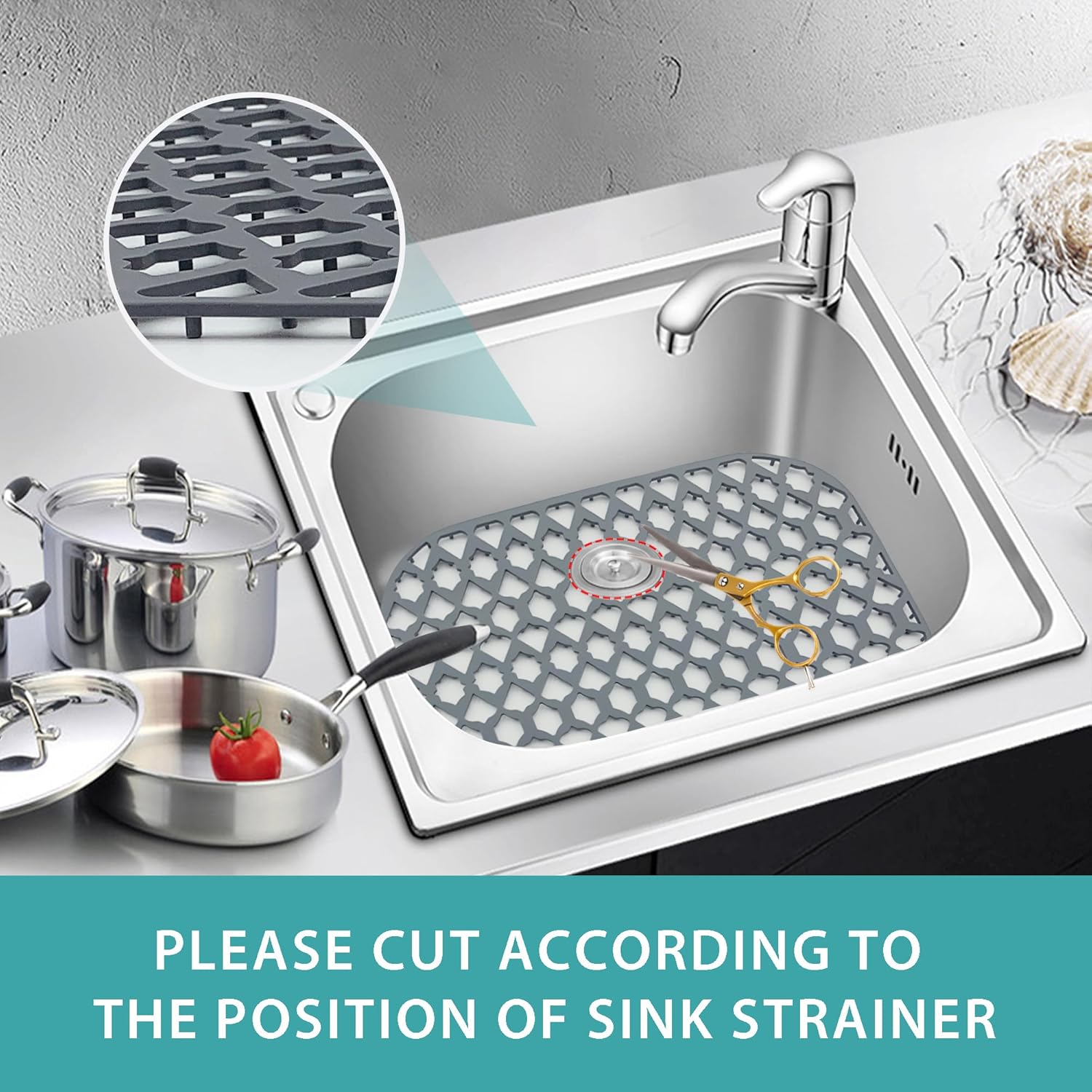 - Large Size & Flexiable - The size of our silicone sink mat is 16.7x12.5 inches and cut the drain according to your needs.. The silicone sink mat is flexiable that easy to fit the bottom of the kitchen sink. The silicone sink mat not only can be sink protectors for kitchen sink, but also can be a drying mat or dish mat. It is an essential item for the daily cleaning of the kitchen.