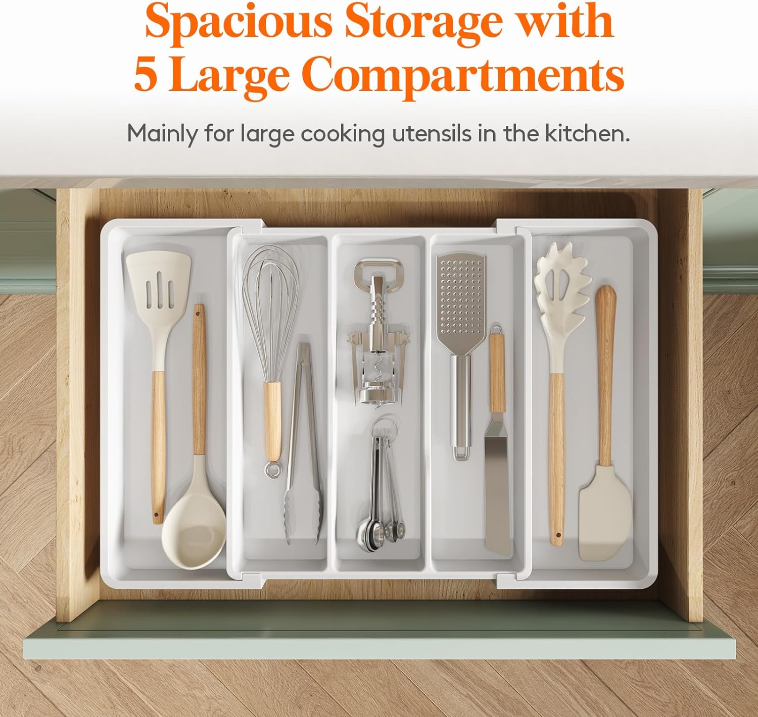 - Sort Your Silverware: The silverware tray comes with 3-5 compartments, creating more space in drawers for spatulas, ladles, tongs, utensil sets, and whisks. Streamline your cooking with a no-install organizer that keeps cutlery at your fingertips