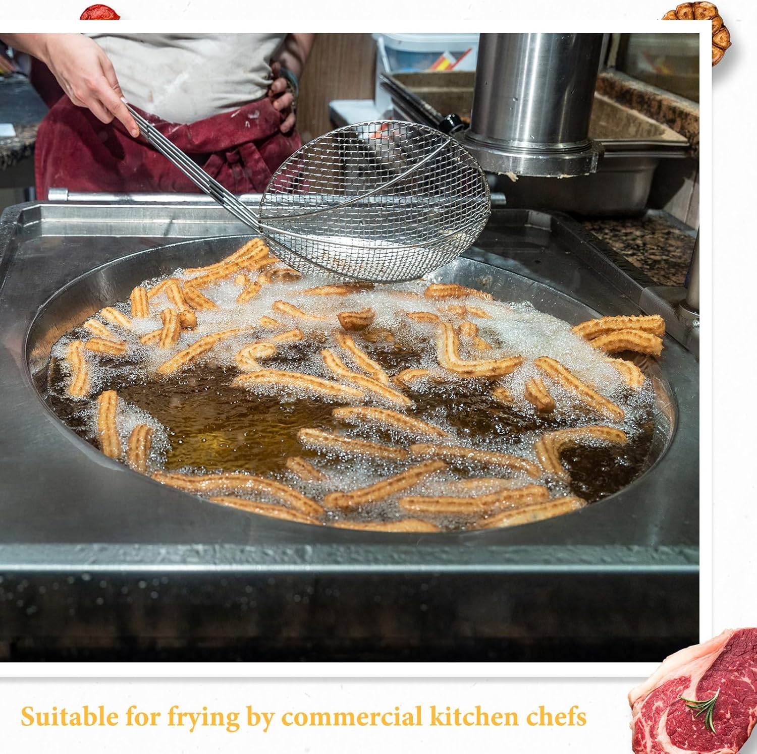 - Quality and Strong: this skimmer cooking is composed of a wire mesh bowl and plated handle; This durable construction ensures longevity while providing an aesthetically pleasing appearance; The plating also helps prevent corrosion, ensuring that the skimmer remains in top working condition even with frequent use