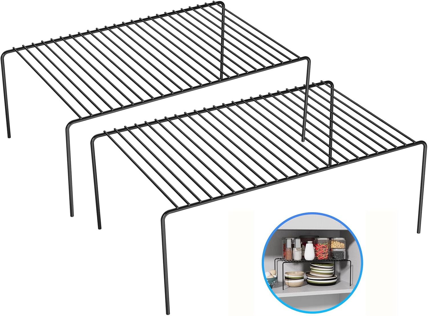 Large(15.7 x 9.4 inch)Black Cabinet Storage Shelf Rack Set of 2, Rustproof Metal Wire Kitchen Counter Organizers and Storage, Spice Organization for Cabinet, Plate, Dish, Pantry, Bathroom, Fridge