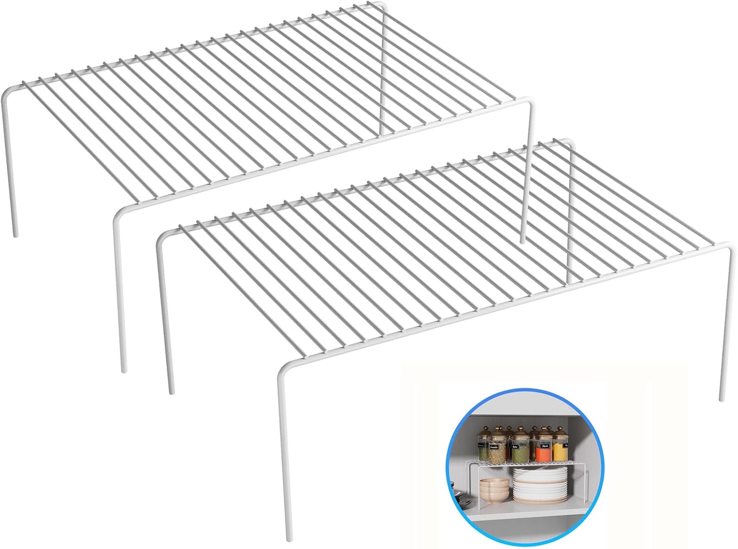 Large(15.7 x 9.4 inch)White Cabinet Storage Shelf Rack Set of 2, Rustproof Metal Wire Kitchen Counter Organizers and Storage, Spice Organization for Cabinet, Plate, Dish, Pantry, Bathroom, Fridge