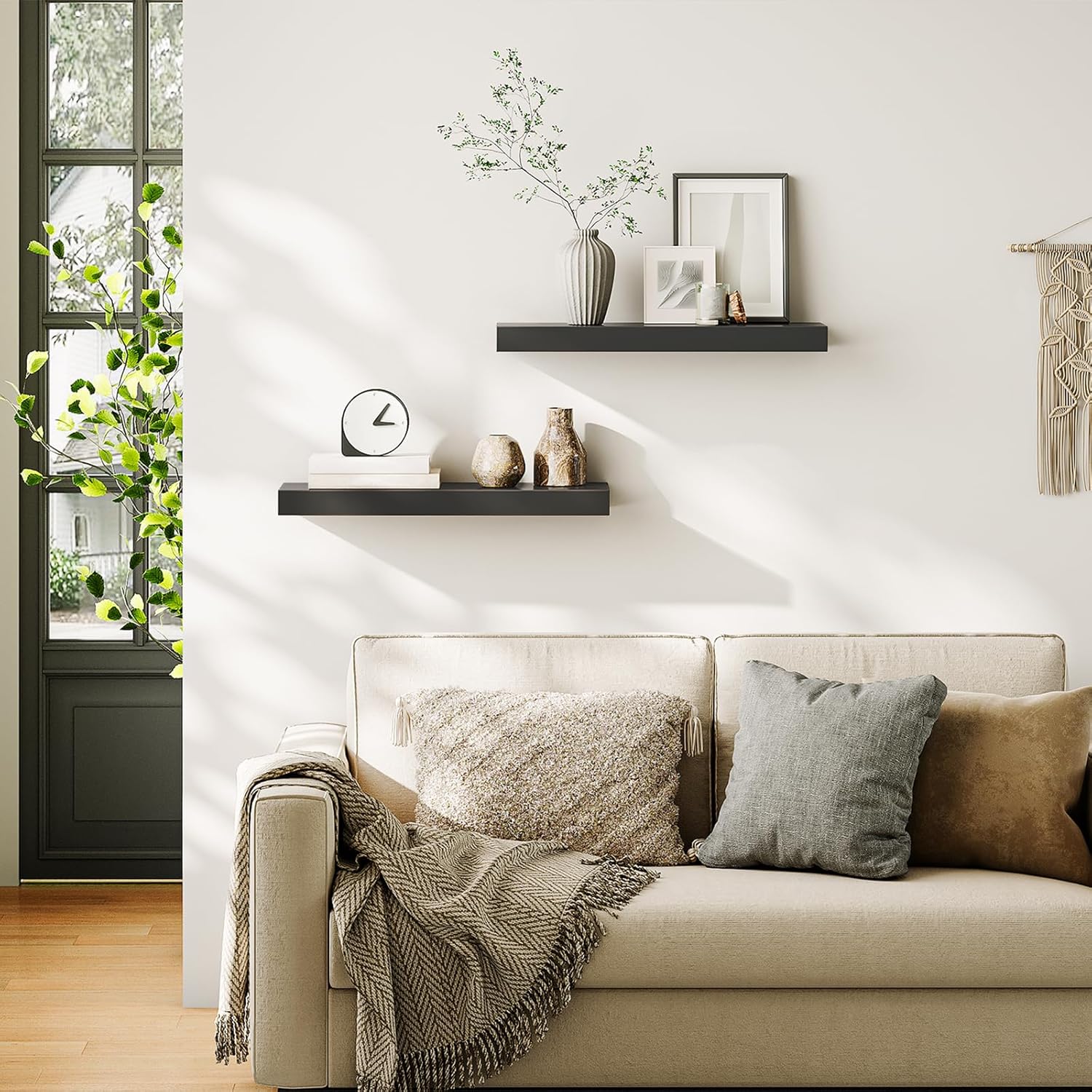 HOOBRO Floating Shelves for Wall, Wall Mounted Shelf Set of 2, 23.6" Hanging Shelf with Invisible Brackets, for Wall in Bathroom, Bedroom, Toilet, Kitchen, Living Room, Office, Black BK60BJ01