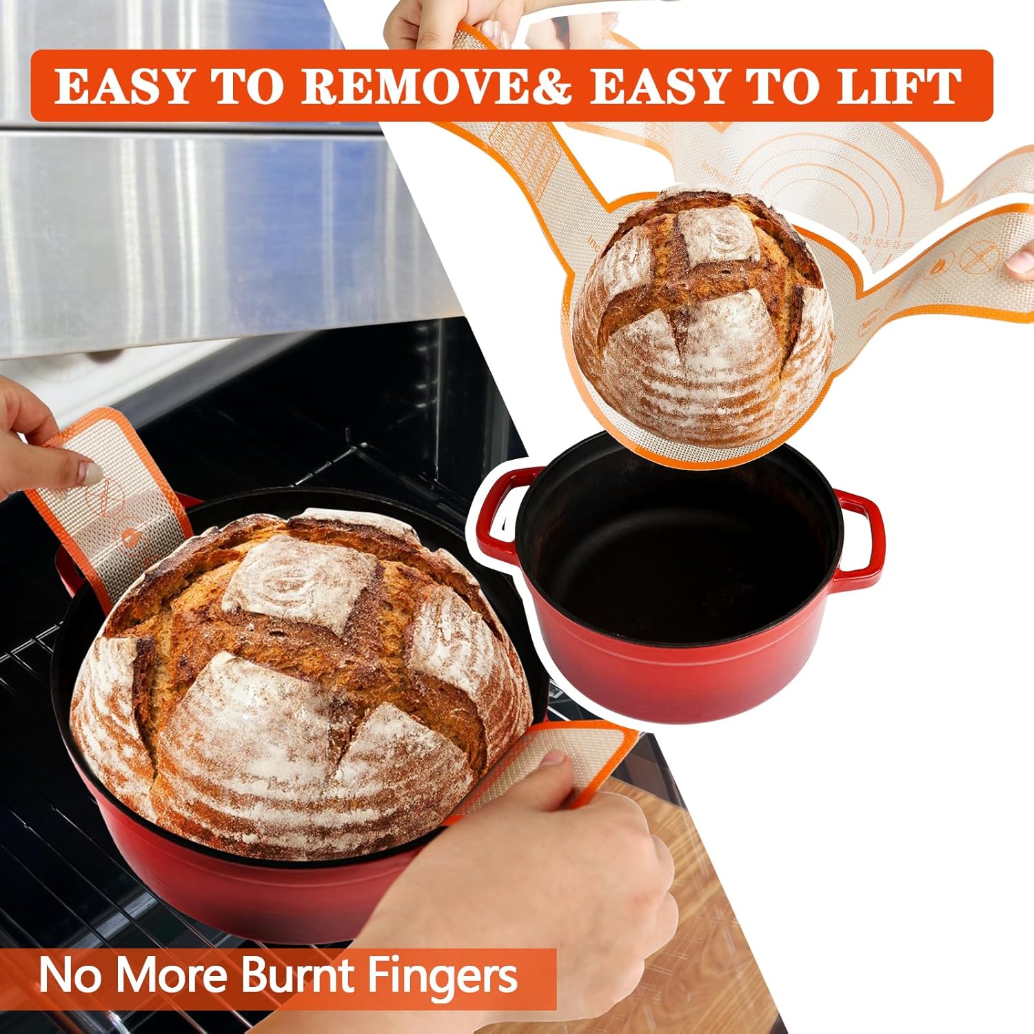 - Extra-Long Sling-Silicone Bread Sling is a flexible, non-stick baking mat with an extra-long sling that helps you easily and safely transfer dough to hot dutch oven or cast iron pot without the risk of burns.