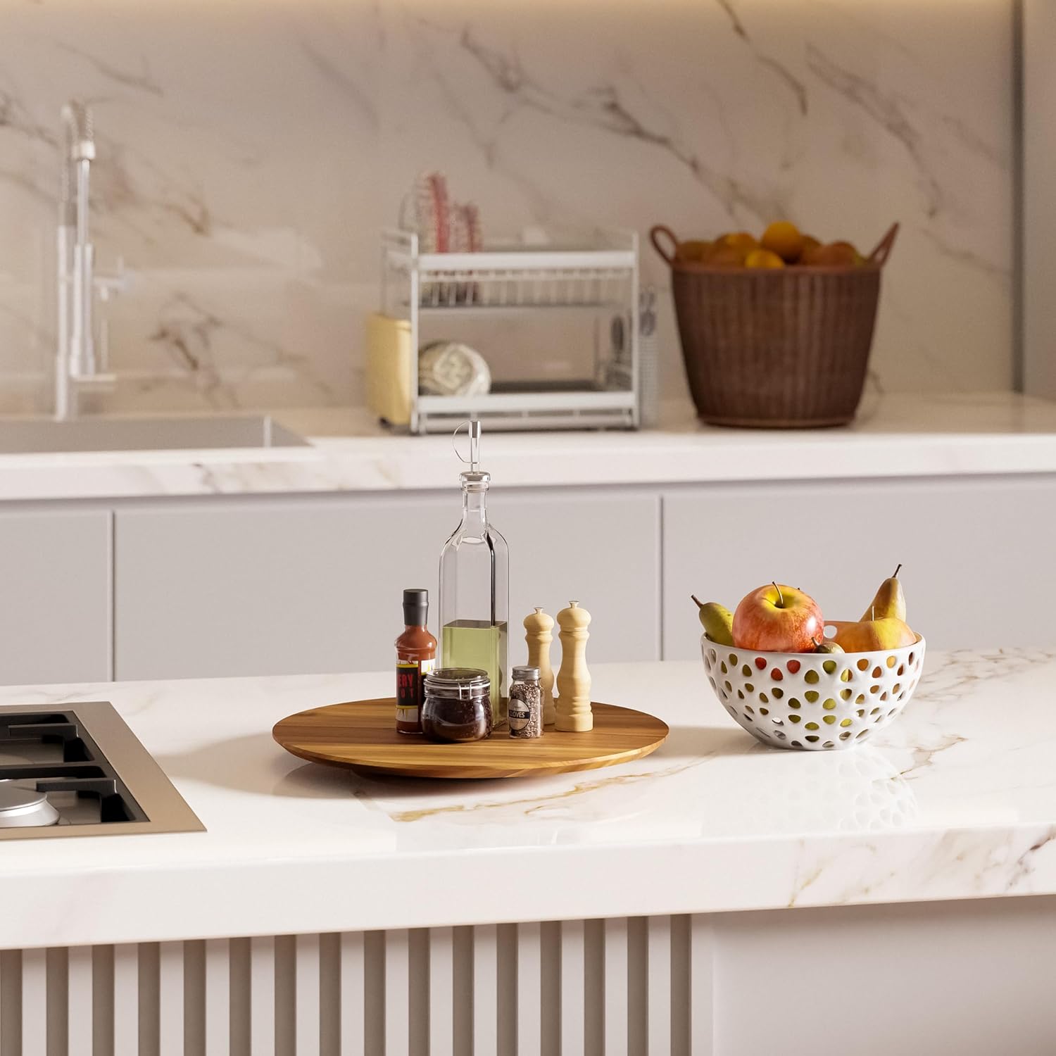 - Smooth Rotation with Metal Ball Bearing: The lazy susan effortlessly rotates 360 degrees, facilitated by its metal ball bearing, allowing easy access to all surfaces with just a single turn.