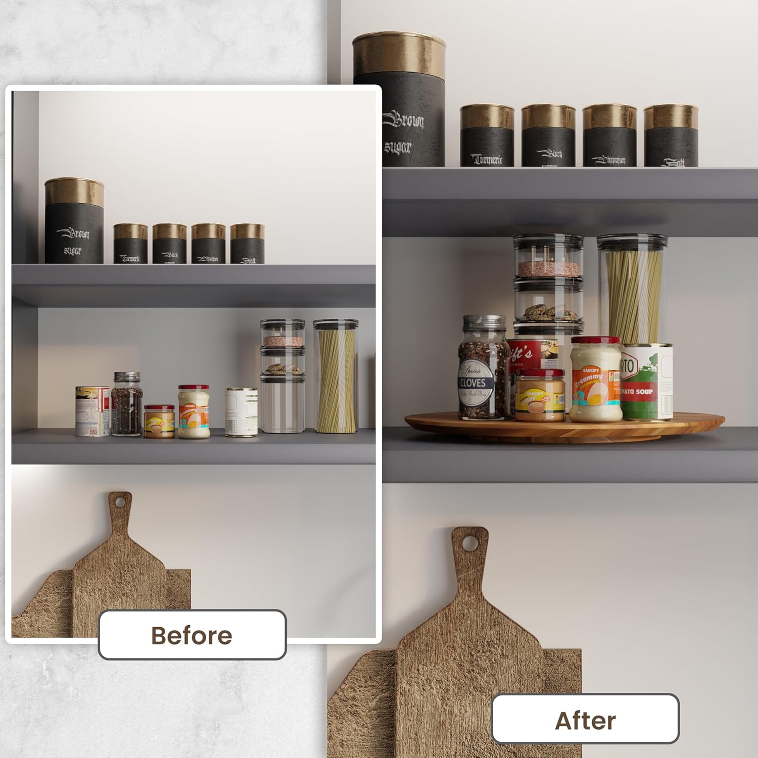 - Versatile Usage: Beyond its function as a spice jar organizer, the 16-inch Lazy Susan is ideal for presenting large appetizer boards, including Cheese Boards, Charcuterie Boards, and Cold-cut parties. It serves as the perfect turntable for displaying decorations in your home. A versatile and thoughtful gift option, suitable for weddings, housewarming events, Mother's Day, or as a centerpiece for any special occasion.