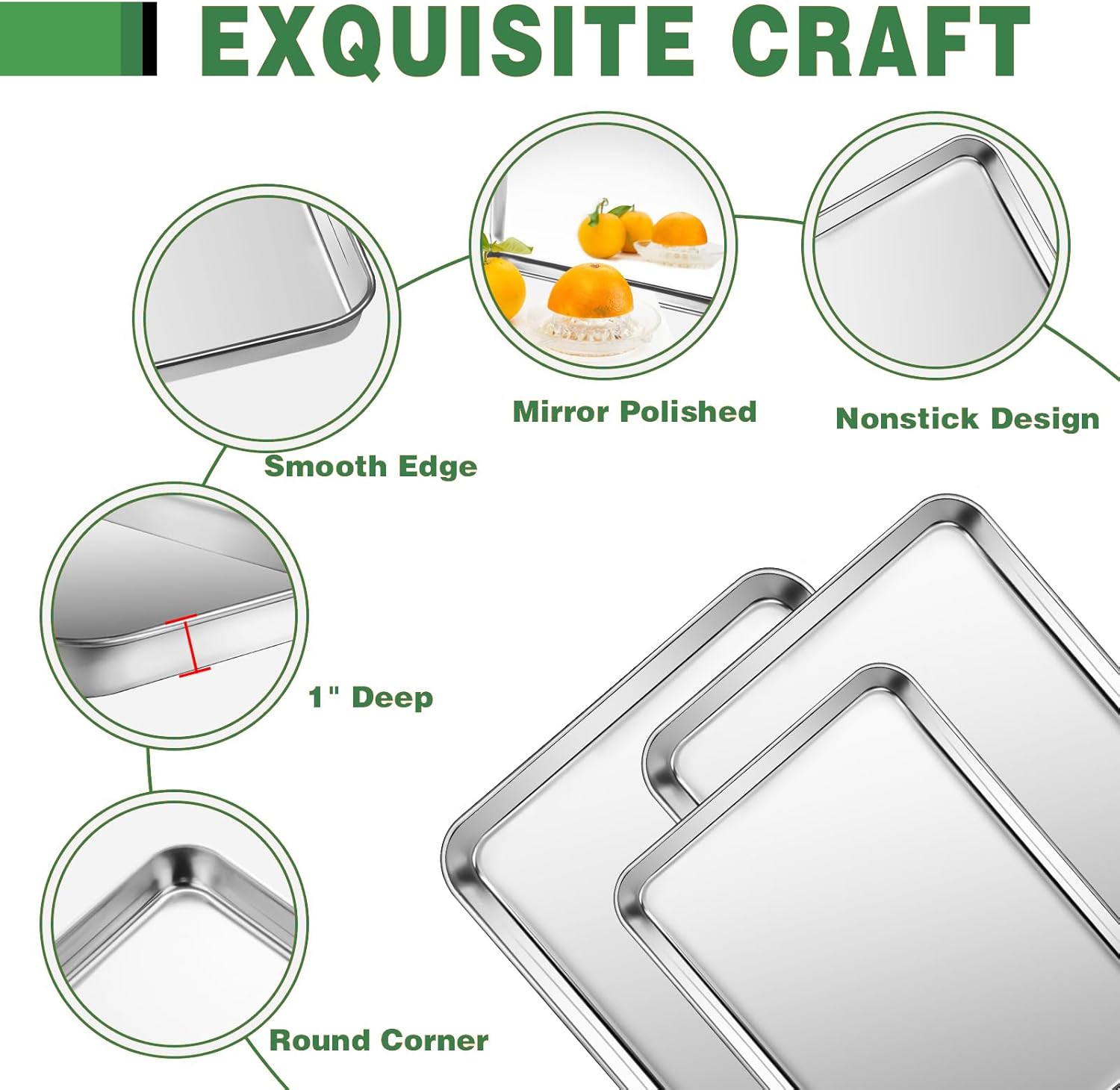 - High-Quality Stainless Steel: Our baking sheet is made of professional food grade high quality stainless steel, with a thickness of 0.8 mm, making it extremely sturdy and durable. And it can withstand temperatures up to 450°F, and the reinforced encapsulated steel edges prevent warping, ensuring that our baking pan remains perfectly shaped forever
